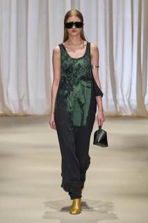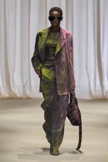 Astratta ma contemporanea. Negli ultimi look gli abiti con tagli più classici erano sotto la lente di un caleidoscopio che ne esaltava i materiali lucidi e satinati. Grazie alle silhouette eleganti vediamo dei perfetti abiti da sera e dunque, nel complesso, possiamo trovare look per ogni occasione. Questa collezione paradossalmente ci rassicura. È come quell’amica della moda che non si perde un evento e ti obbliga ad uscire di martedì sera anche se l’unica cosa che vorresti fare è mangiarti un chilo e mezzo di gelato, guardare una commedia con Hugh Grant e piangere forte. Casual e formale, astrazione e dannazione flirtano insieme in un salotto ovattato; in questo momento storico dove sembra che niente abbia un senso, ci serve qualcosa che ne abbia e ci indichi una strada, magari non già percorsa, ma almeno illuminata.