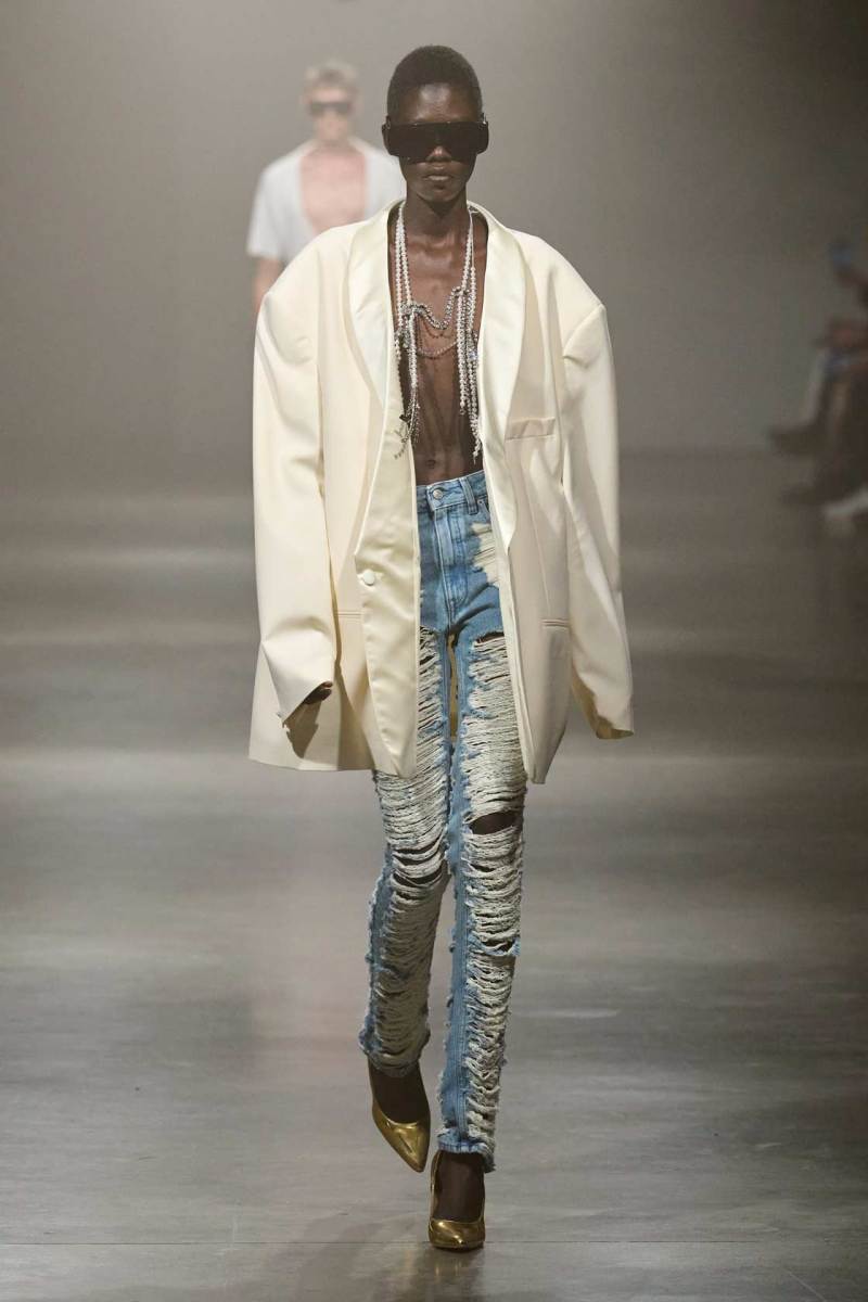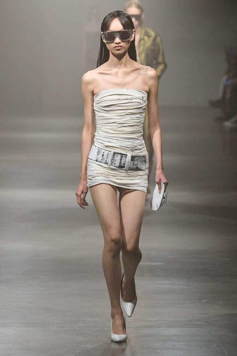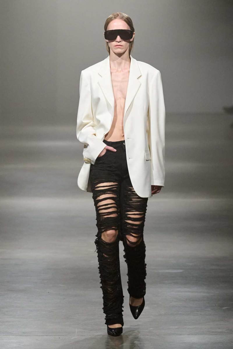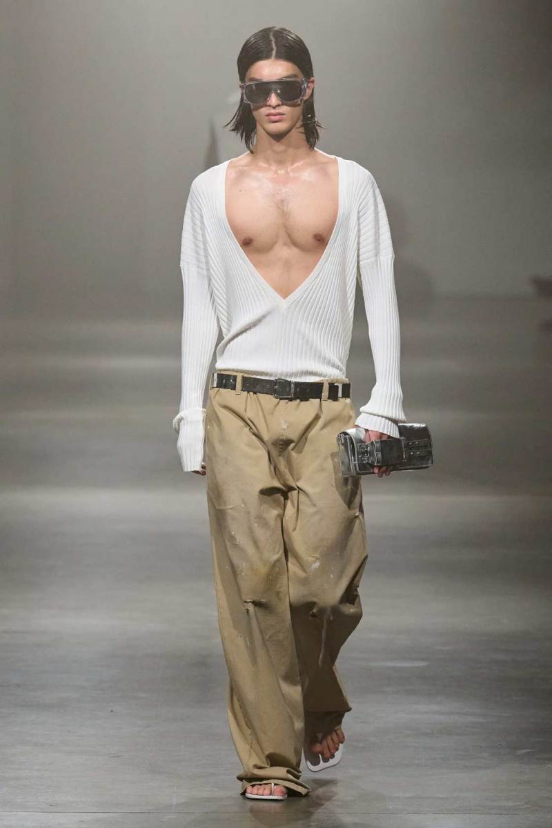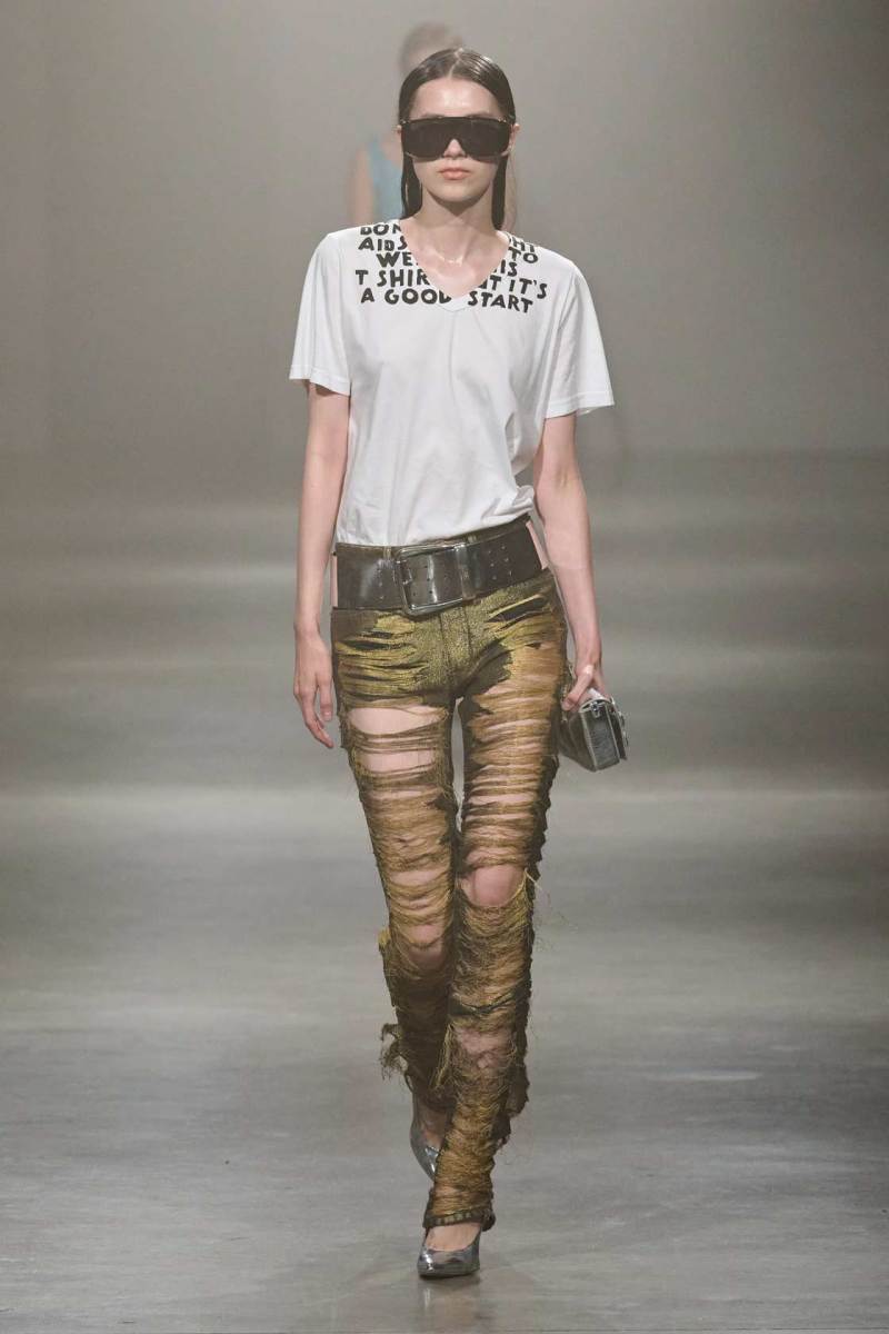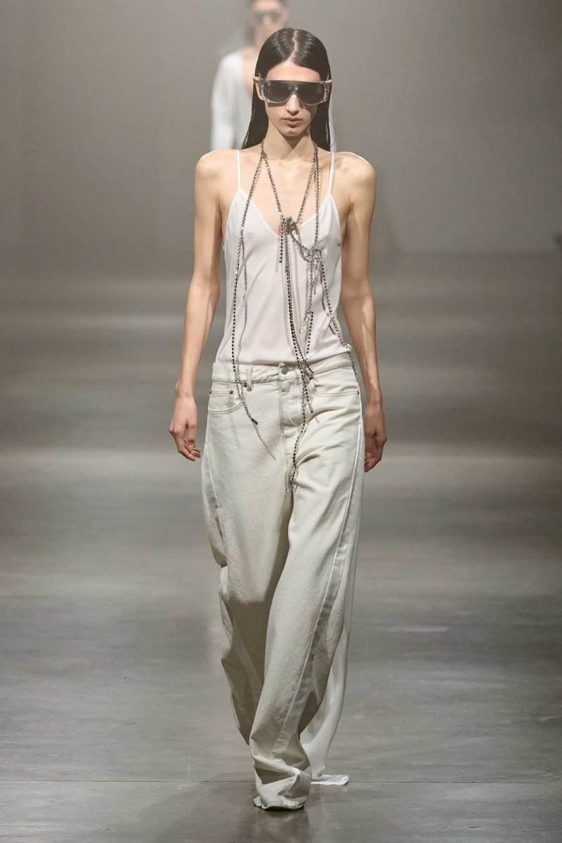 Che Margiela abbia deciso di usare il tema del bianco, come nel caso di Cavalli, e di reinterpretarlo a modo proprio all’interno della recente collezione? Iconico, sicuramente, il vestito metallizzato, in quanto incapsulato in una copertura volta ad imitare una busta in polimeri. La casa di moda ha bilanciato moderno e classico miscelando i due stili nella sua recente produzione artistica, dunque, realizzando una collezione innovativa ma anche conservatrice. Alcuni strass fanno il loro ingresso sulla scena per rendere preziosi i capi, con accanto delle scollature vertiginose sui vestiti dei modelli maschili. Infine, il nero subentra (verso la conclusione) nella sfilata di moda, omaggiando due modelli che portano le recenti creazioni del brand con grazia ed eleganza.