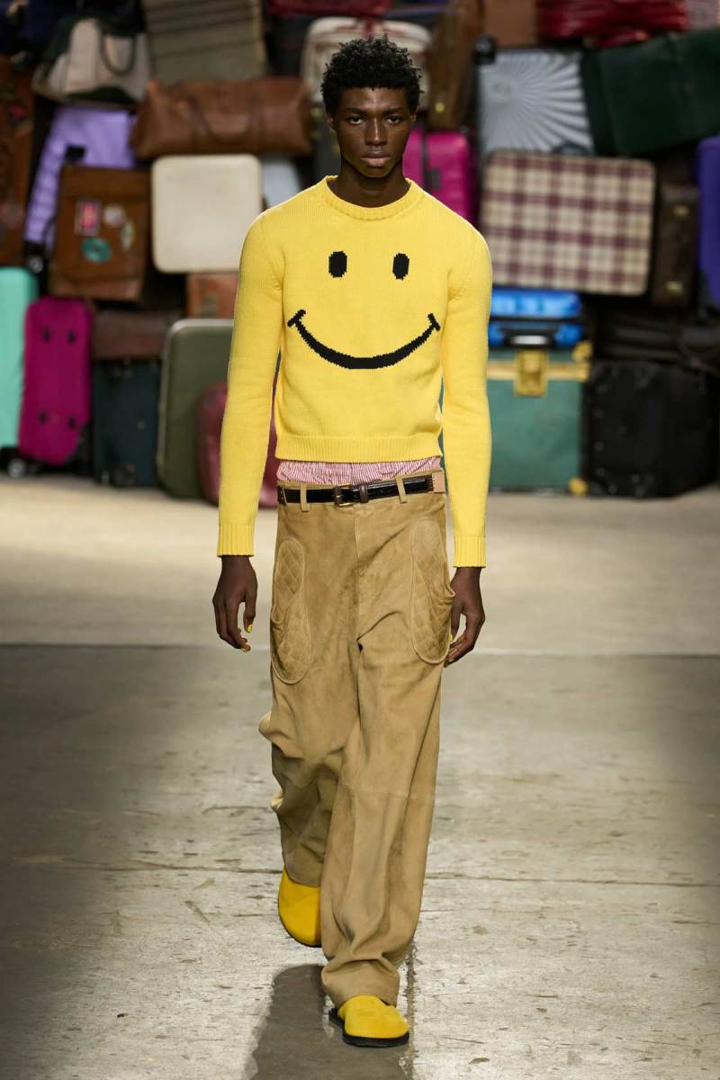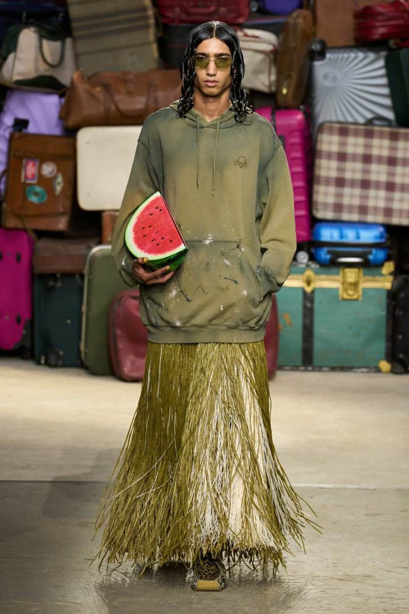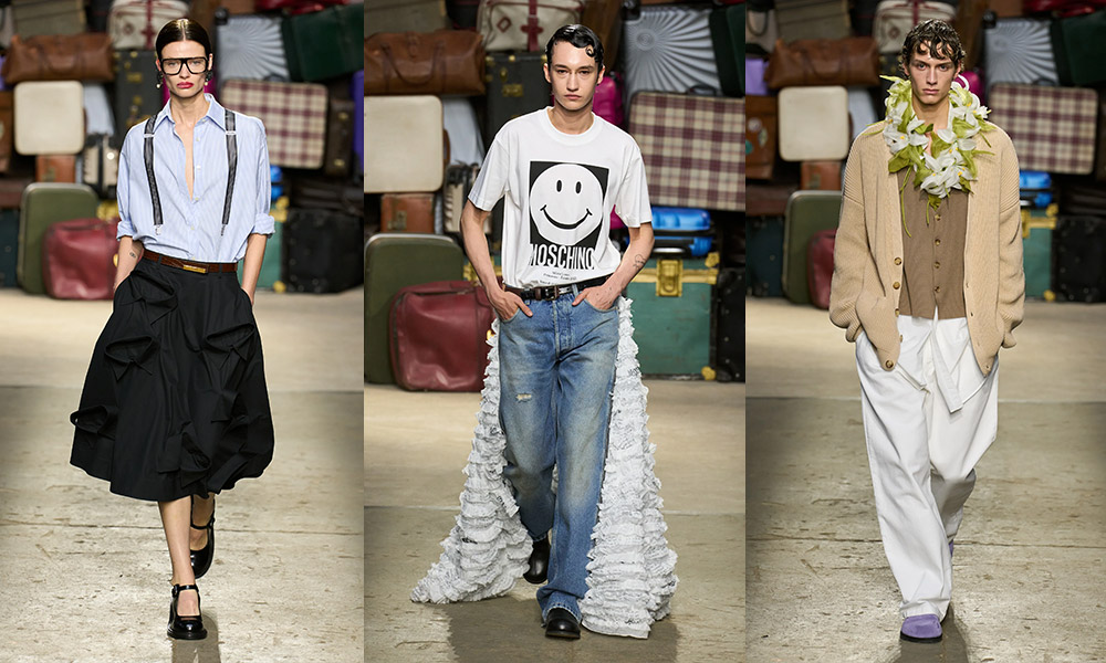 Il focus della nuova collezione proposta da Moschino è su quelli che vengono definiti oggetti smarriti: gli elementi del quotidiano vengono trasportati in un’altra dimensione, più divertente, ironica e originale. Essi vengono rivisitati per sfidare ogni tipo di convenzione, per allontanarsi dal banale utilizzo quotidiano e proiettarsi in un mondo parallelo giocoso.