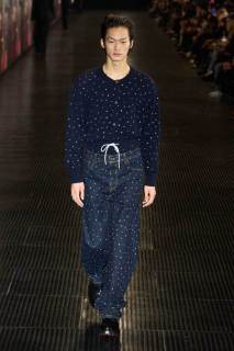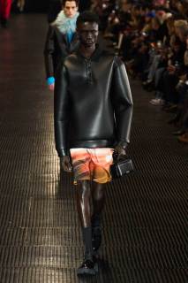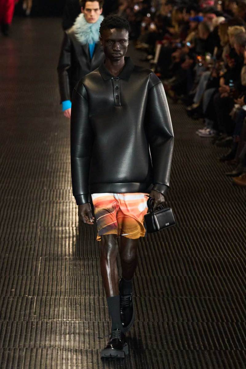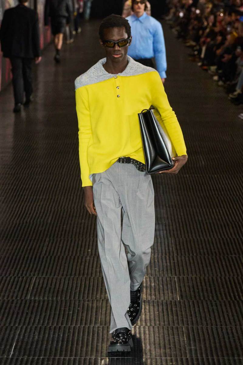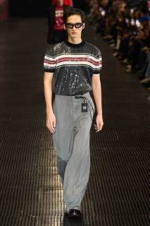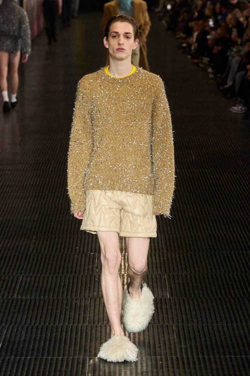 In concreto, in passerella sfilano anorak in lana a punto pelliccia, cappotti ampi, shorts e maglioni tempestati di cristalli, bermuda e polo con le stampe sfocate della metropolitana in corsa.