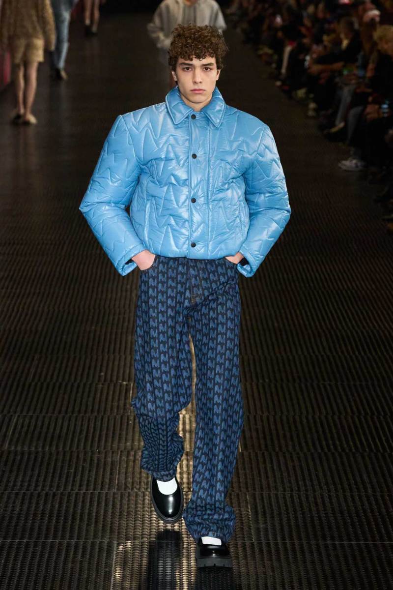 Anche la città di Milano, così come gli intarsi e i corrimani tubolari di Albini, sono grandi spunti per la creazione dei nuovi capi firmati MSGM; è come se in qualche modo il potere della velocità si immagazzinasse in tutti i capi e non si distaccasse più da loro.