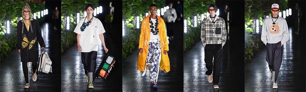 Per la Primavera/Estate 2020, Francesco Ragazzi l’uomo total Palm Angels se l’è immaginato particolarmente floreale. All’interno di una location in cui all’oscurità della metropolitana si opponevano le foglie verdi di piante tropicali, sono sbucati anche molti altri elementi naturali. Un’atmosfera anni Settanta ha pervaso il tutto, un vintage con impronta Palm Angels. Farfalle dai più svariati colori e dimensioni hanno popolato cappotti e camicie super alla moda, inserendo anche un nuovo elemento: il kimono.
