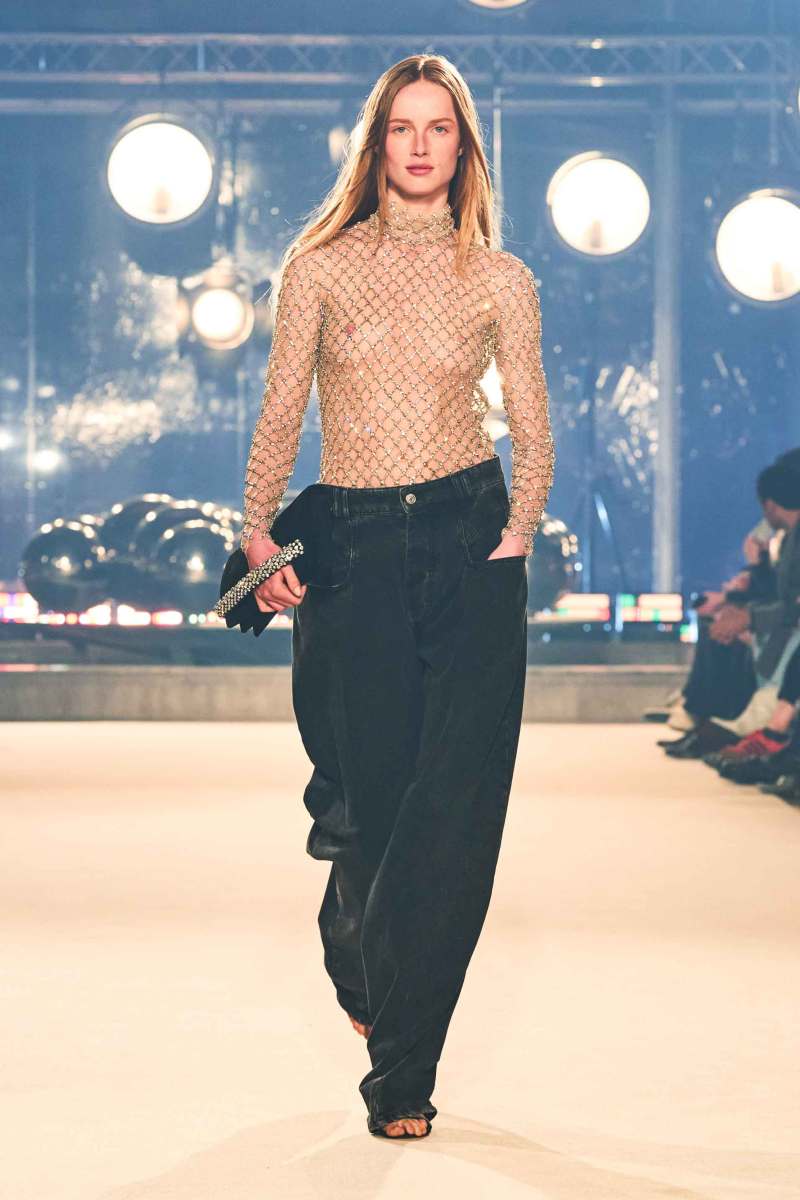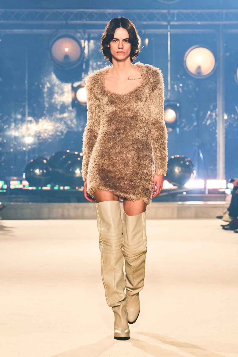 I cappotti sono oversize, lavorati in maglia spessa per avvolgere le silhouette in un caldo abbraccio, facili da indossare e ingenuamente sexy. I pantaloni sono extra long e portati a vita bassa. Immancabili gli stivali over-the-knee, vera tendenza della stagione da indossare con piccoli maglioni in lana morbida.