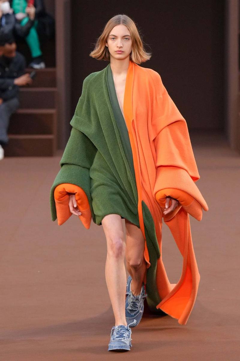 Jonathan Anderson ha presentato a Parigi la collezione Autunno/Inverno 2022-23 di Loewe con una sfilata in cui nulla è lasciato al caso: dagli abiti in passerella alla location (l’arena in cui si è tenuta la sfilata è stata allestita con zucche giganti realizzate dall’artista Andrea Hamilton).