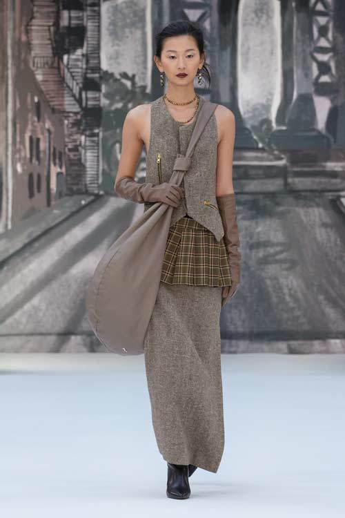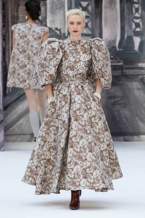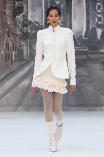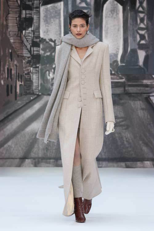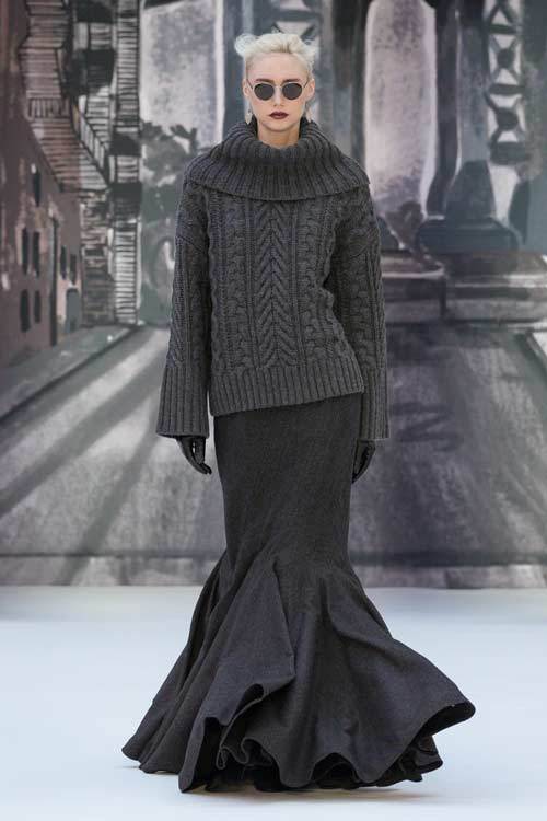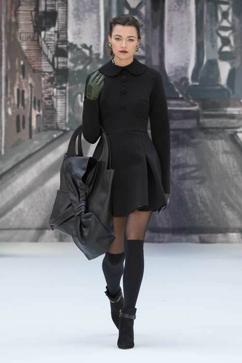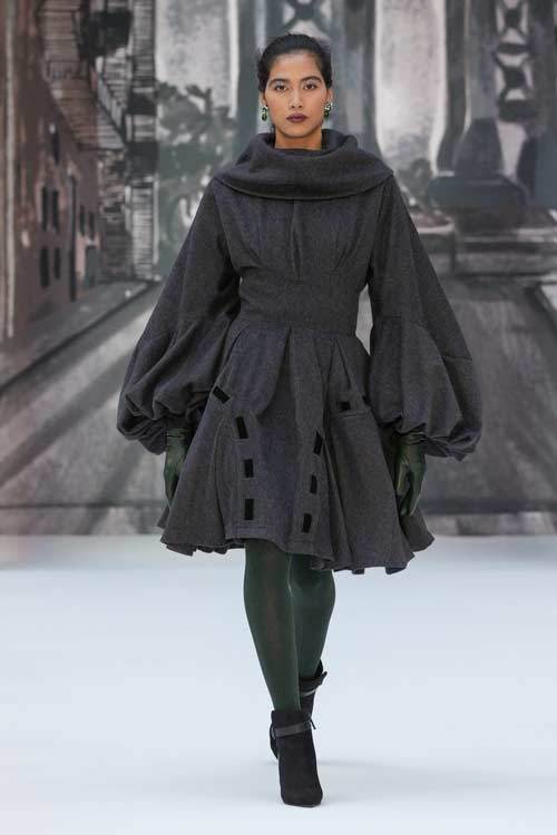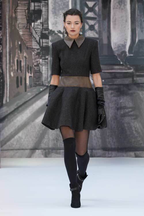 Il designer per il prossimo autunno/inverno propone una collezione in cui i protagonisti assoluti sono il tweed e le classiche tonalità del bianco e del grigio scuro. Giacche bianche e gonne che sembrano fluttuare nell’aria aprono il sipario sulla sfilata; a seguire alcuni look scozzesi, i tailleur sartoriali con gonne in tweed, poi ancora, abiti corti eleganti e cappotti stretti sulla vita. Tutti look versatili e comfy perfetti per il giorno. A questi si alternano capi più importanti pensati per le occasioni serali, cene di gala, cocktail party; la scelta ricade su abiti fantasia con maniche a sbuffo.