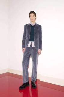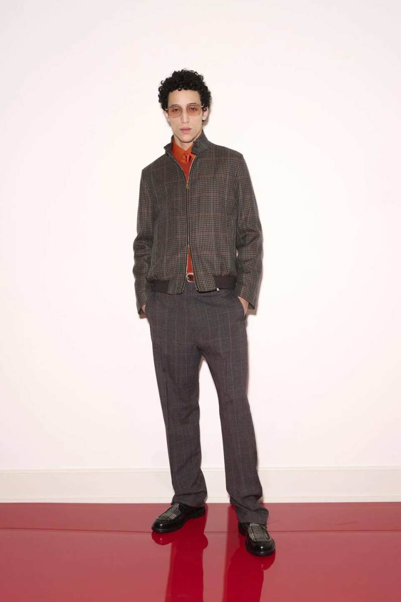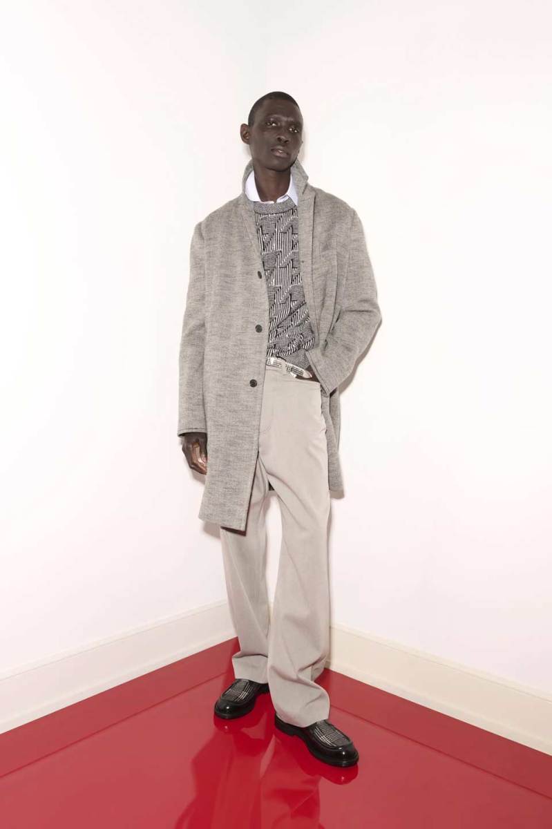 Smith, cresciuto sotto l’influenza di icone fotografiche come David Bailey e Terence Donovan, omaggia gli anni ’60 con abiti sartoriali che combinano tessuti classici inglesi in maniera inedita. Giacche e pantaloni non abbinati, accompagnati da camicie e cravatte coordinate, ridefiniscono l’eleganza contemporanea con una vena giocosa.