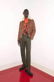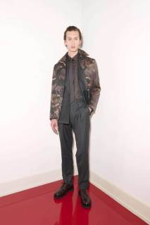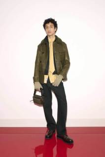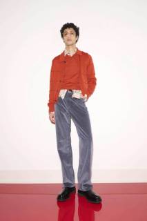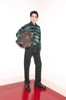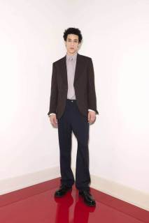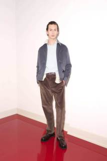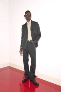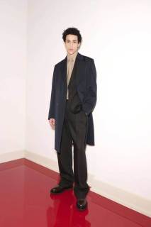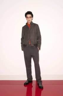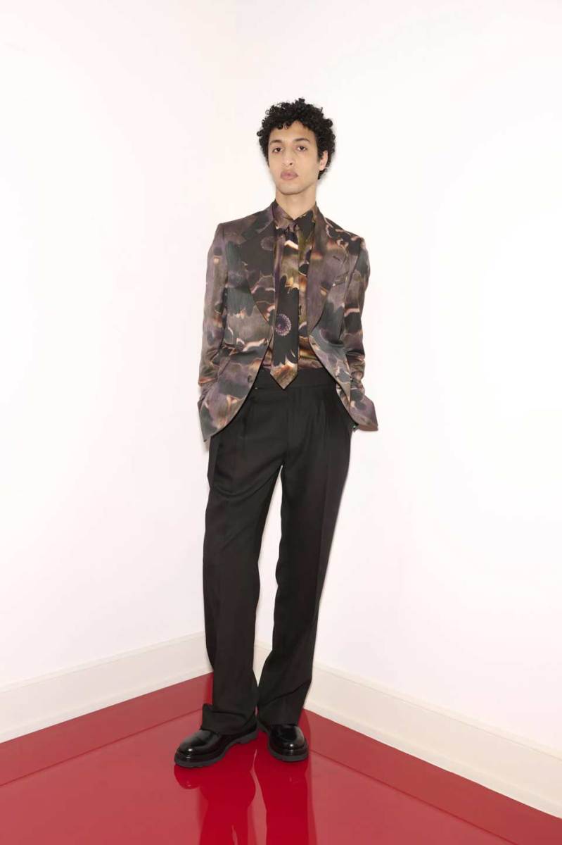 La collezione esplora la sartoria morbida con dettagli intelligenti, come giacche doppiopetto con risvolti monopetto e tessuti personalizzati. Gli scarabocchi di Harold diventano fodere in tessuto, mentre le sue fotografie floreali si trasformano in stampe distorte per camicie e cravatte, donando un tocco personale e artistico a ogni look.