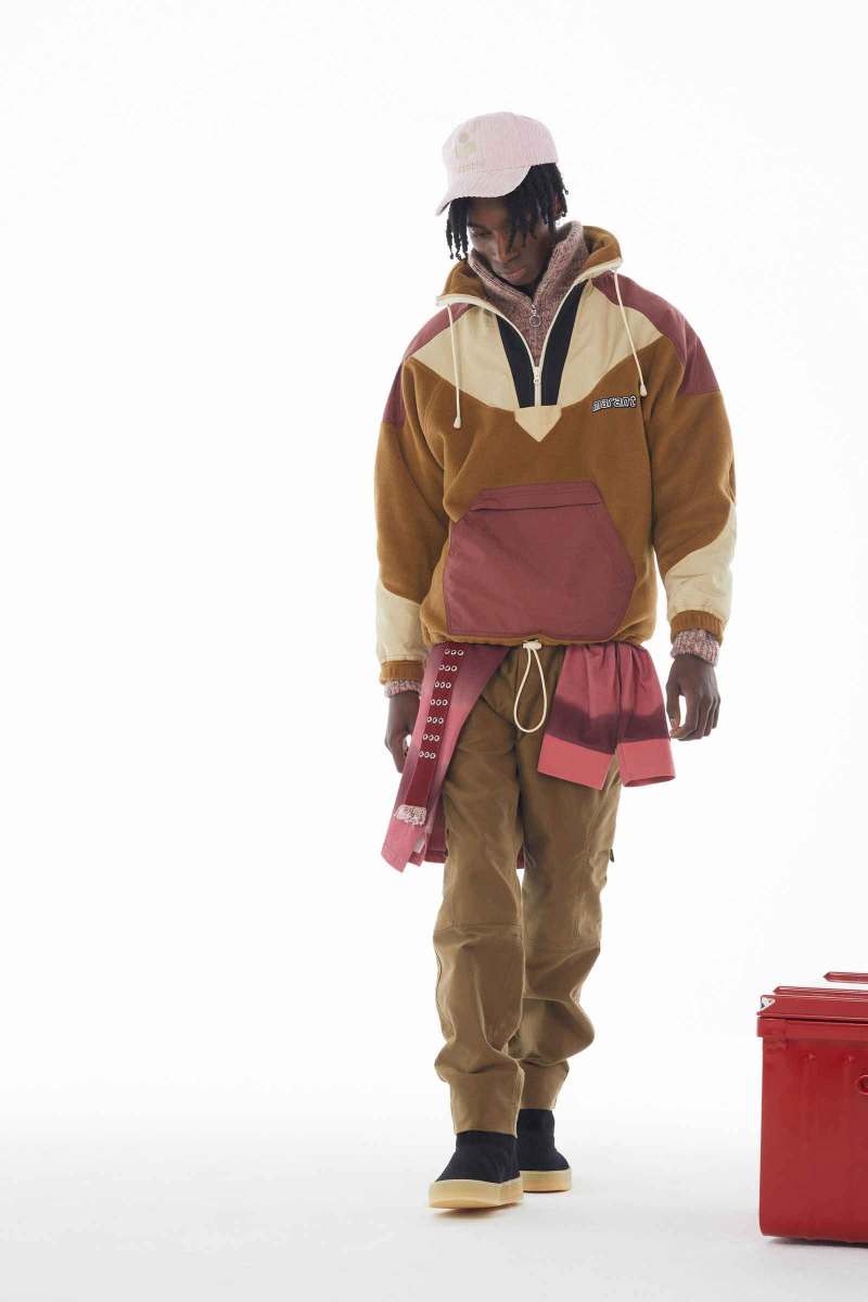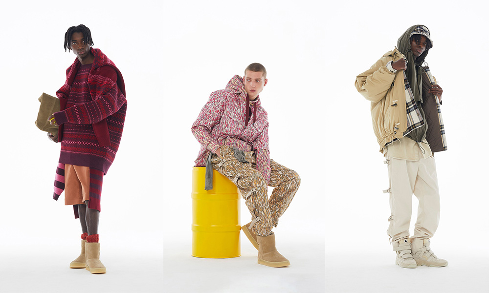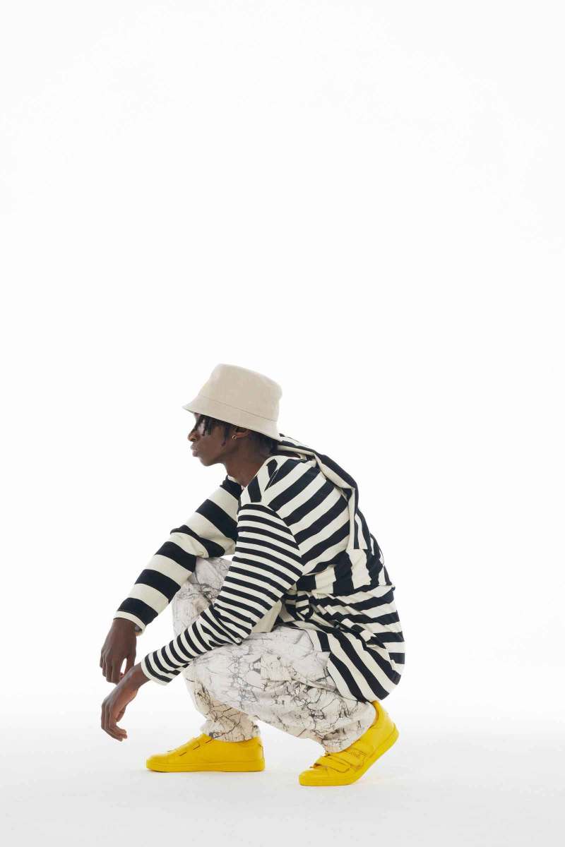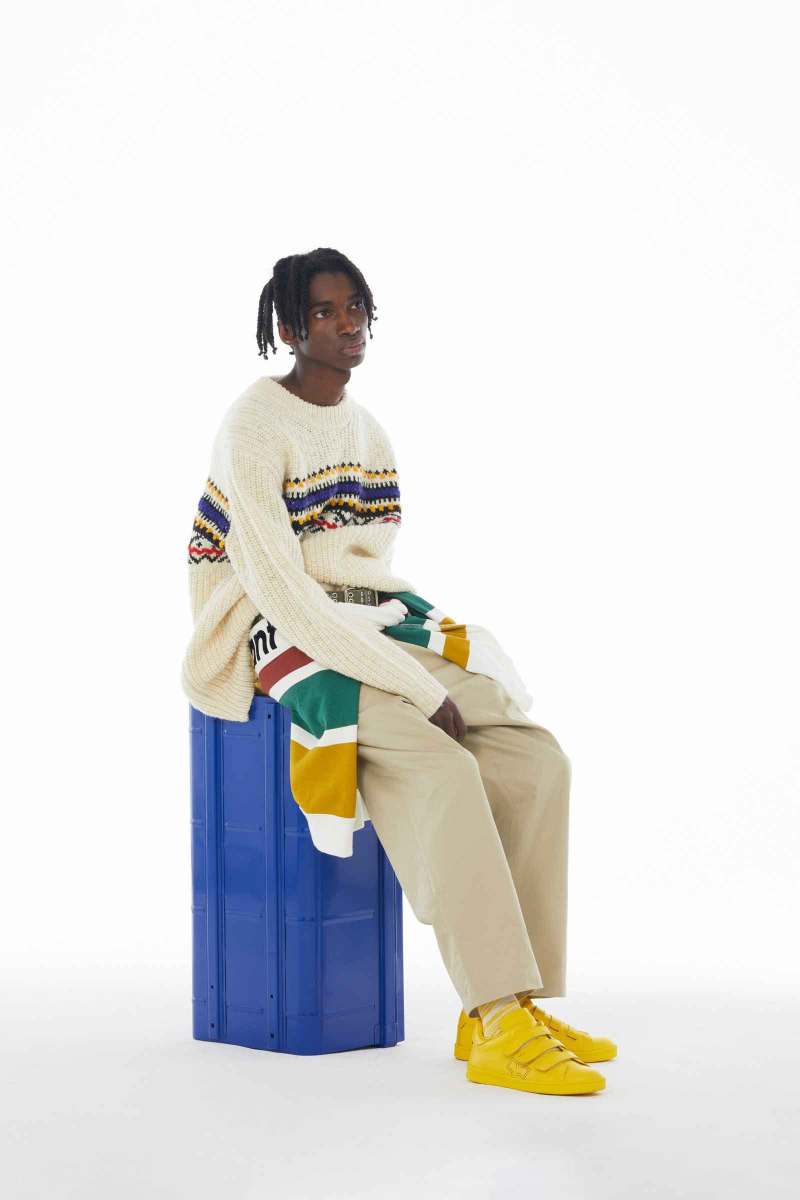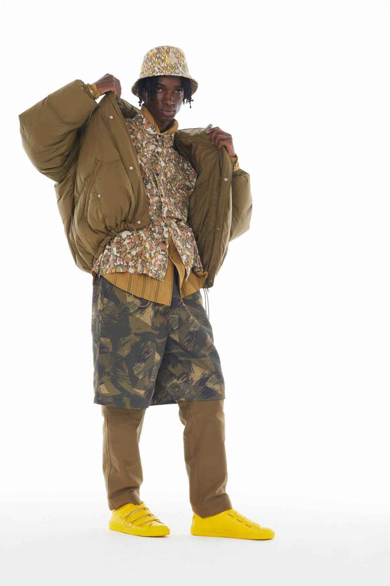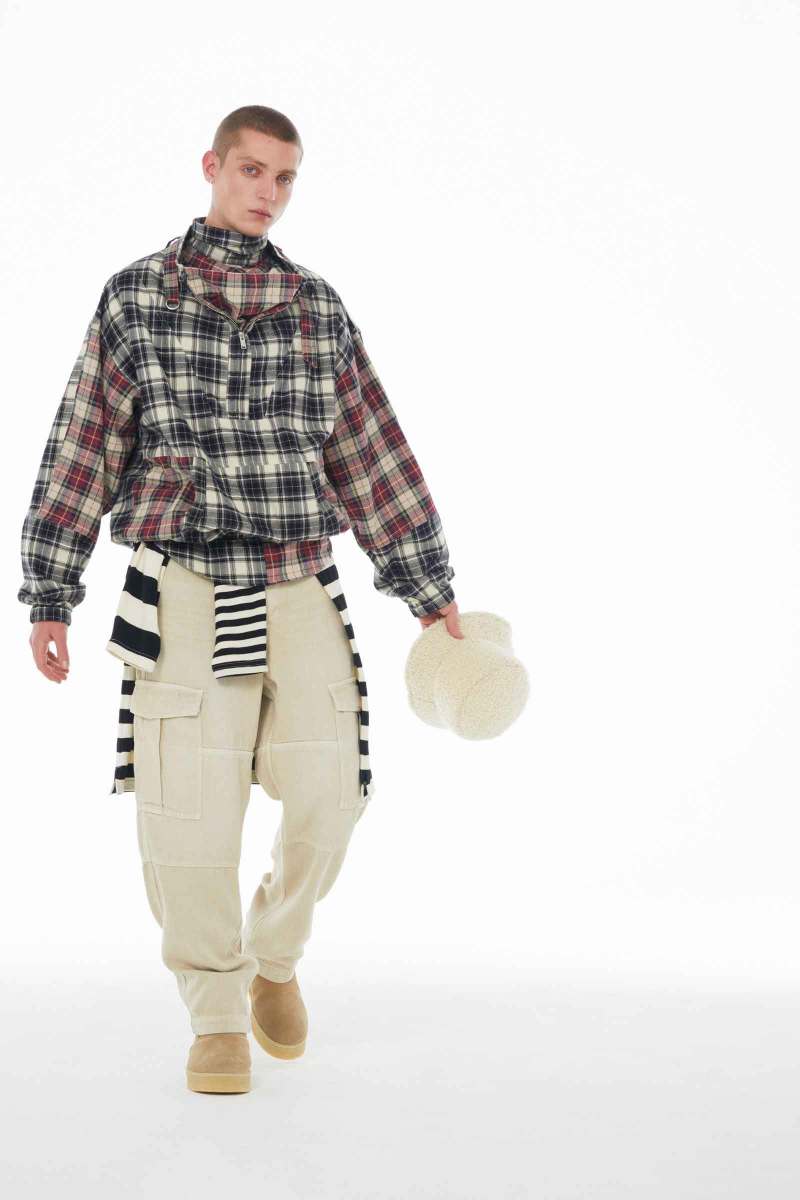 I pezzi e le forme si sovrappongono per un look urbano. Ecco allora che ragazzi vestono pantaloni baggy appoggiati a stivaletti caldi o i Bumkeeh, l’inedita versione maschile dell’iconica sneaker con zeppa, uno dei best seller della casa. Portano sneakers Bartyh dal colore giallo banana, cappellini da pescatore rivisitati, e si legano in vita felpe o camicie a quadrettoni in morbido cotone. I colori neutri come il marrone, il beige e il kaki sono sicuramente i toni protagonisti della collezione, ma spesso sono accompagnati da un pop of color che fa risaltare il look e gli dona quella giusta spinta in più.