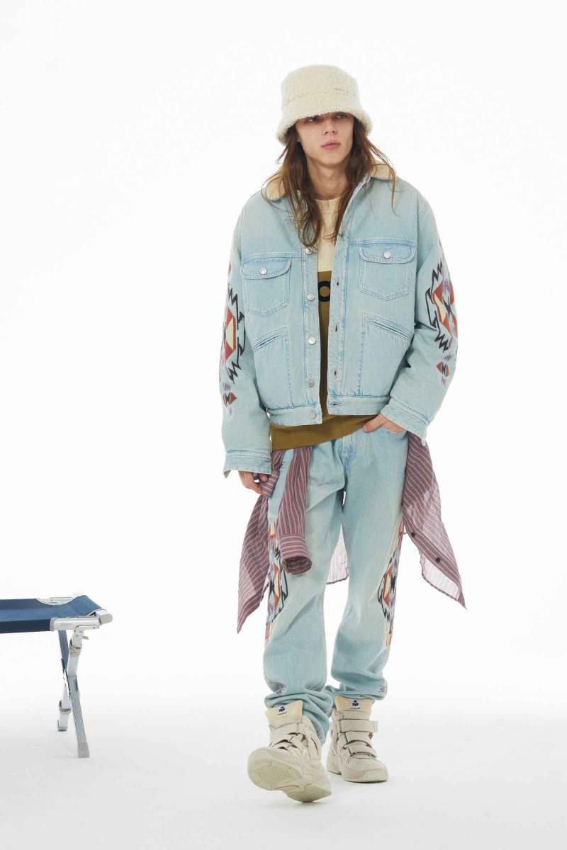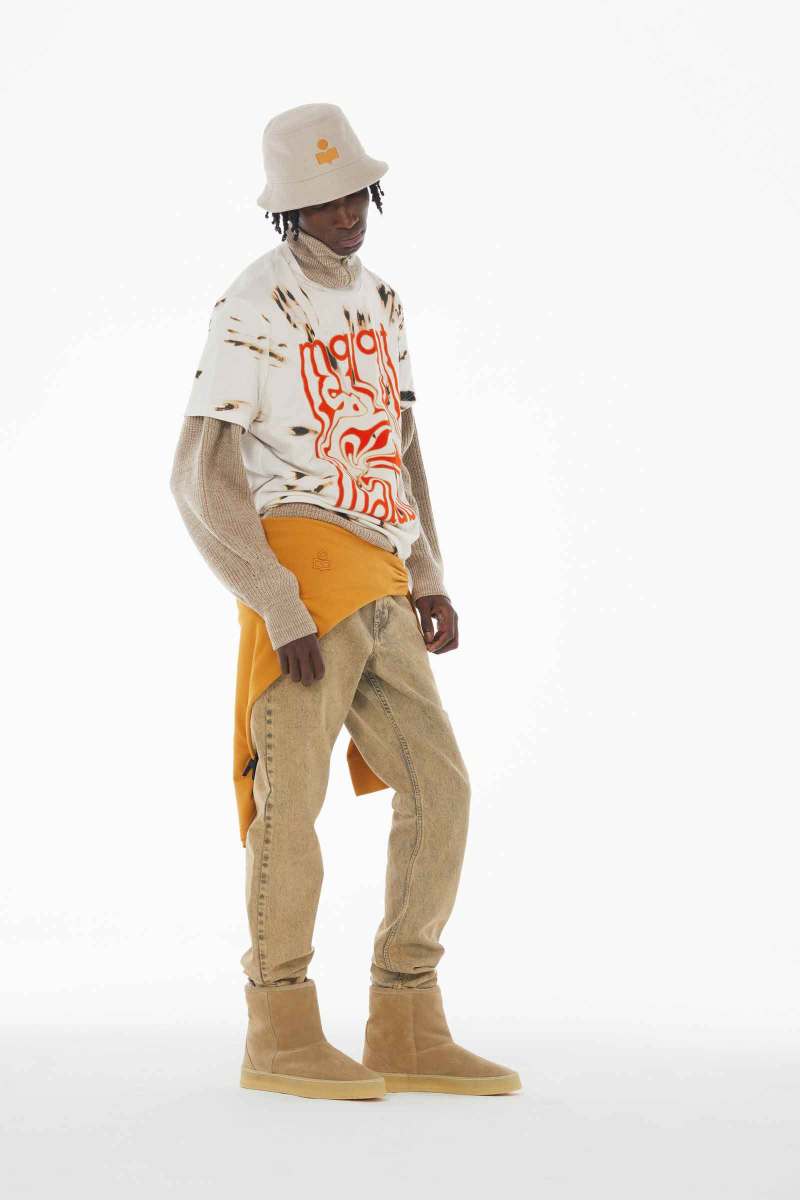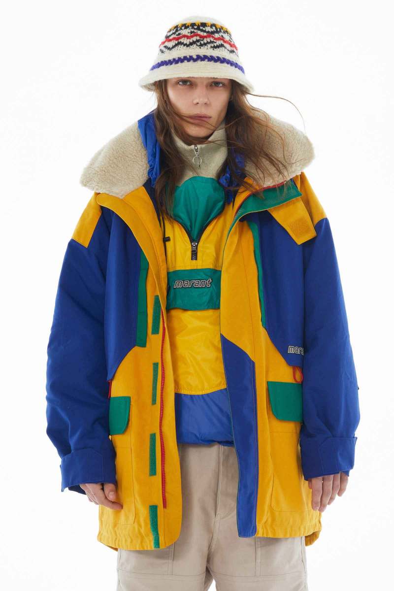 Il denim è lavato e schiarito, giochi di layering danno vita a look casual ma sofisticati. Lo spirito outdoor e il fascino dei grandi spazi dell’uomo di Isabel Marant diventano sempre più evidenti dai parka boxy, dai capispalla in shearling patchwork e dai giacconi antivento oversize posati sulla calda maglieria. Accenti di colori audaci, come il blu cobalto, il verde menta o il rosso corallo, si impossessano dell’activewear, abbinati in contrasto ai toni più pacati dell’outerwear.