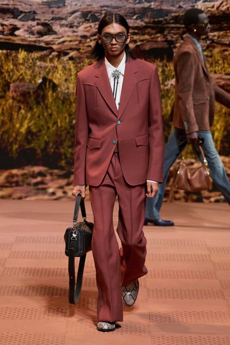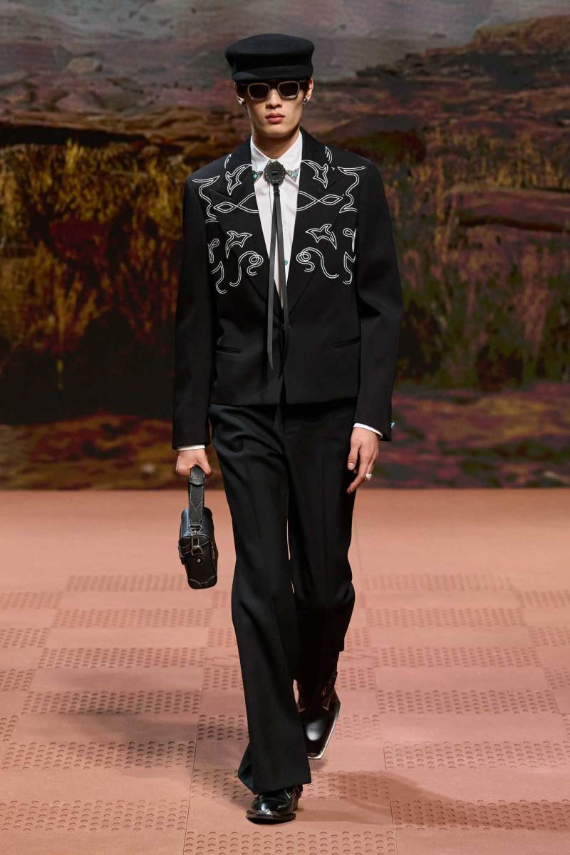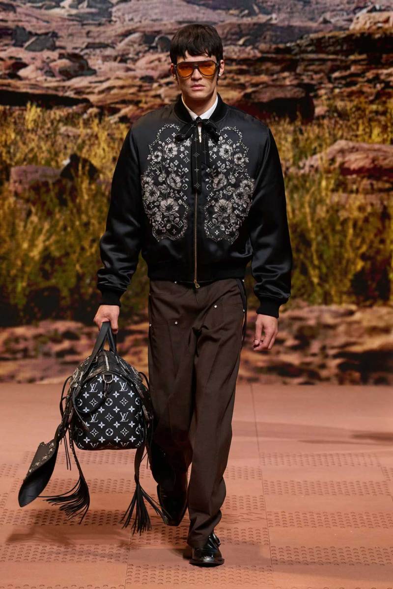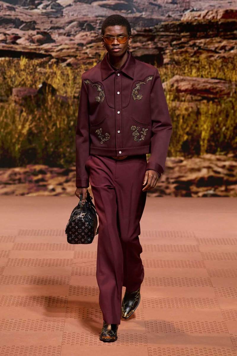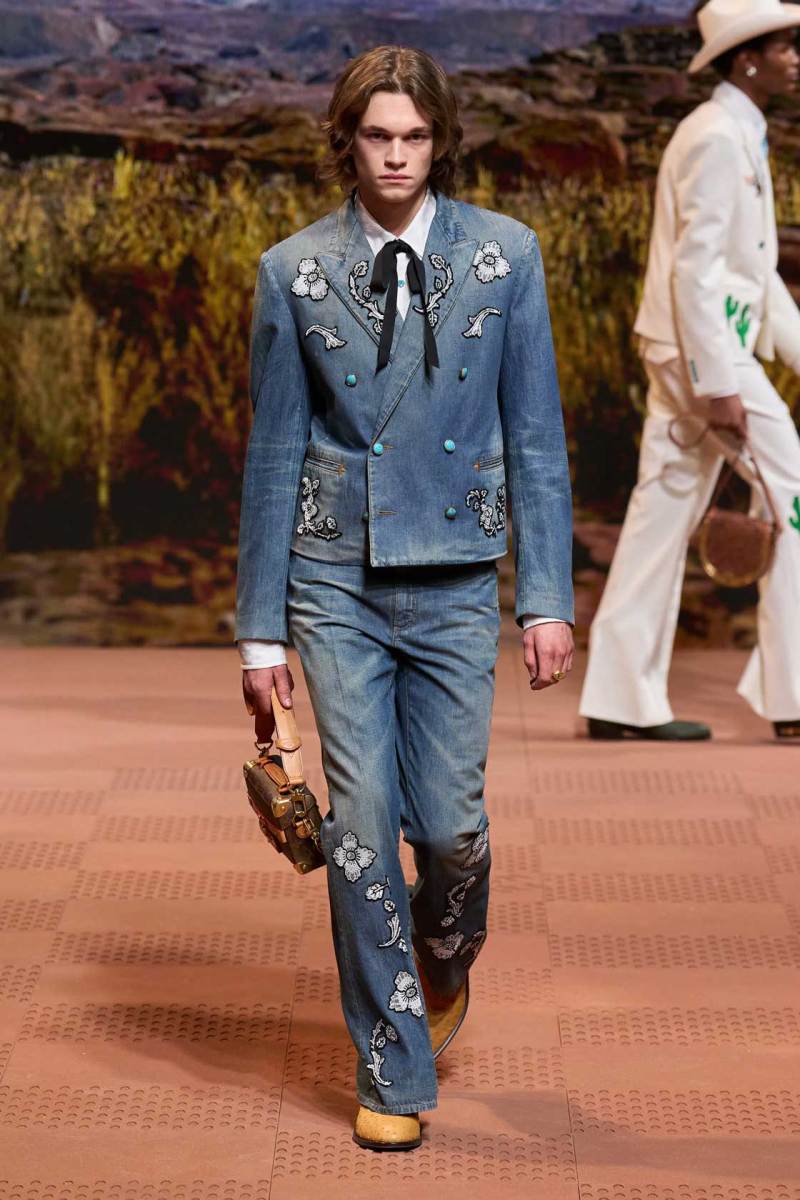 La straordinaria sfilata di Louis Vuitton a Parigi è stata un evento senza precedenti, con Pharrell Williams che ha dato vita a uno show spettacolare. Il tema della collezione si è ispirato ai nativi americani, fondendo elementi della loro cultura sia del passato che del presente. La passerella è stata trasformata in un suggestivo rodeo stile cowboy, con modelli che indossavano abiti decorati con frange, nappe e dettagli western distintivi.