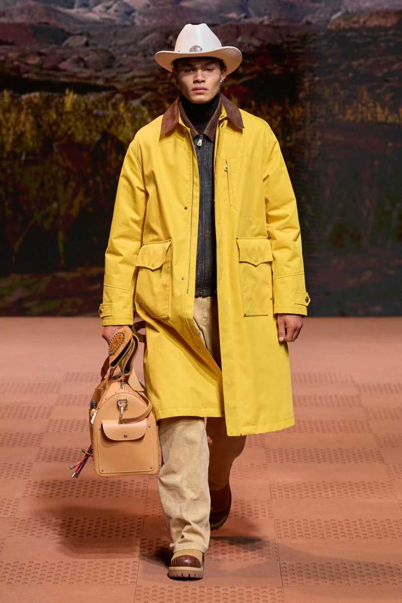 In una delle sfilate più grandi mai viste a Parigi, 82 modelli della collezione viaggiano sulla passerella, muniti di carri con i preziosi bauli firmati LV; veri e propri fuorilegge con il bottino. Le novità proseguono con un focus sulla rivisitazione in chiave chic dei capi base da lavoro, annunciando anche la prossima collaborazione con Timberland.