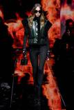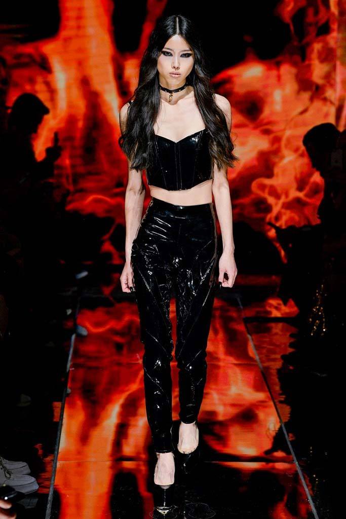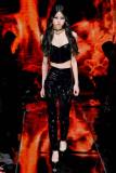 Mini dress scintillanti vengono affiancati a vampireschi accostamenti fra top in pizzo e pantaloni da bikers; maxi cardigan con il logo a doppia P bene in vista sono indossati come vestiti sopra a vertiginosi stivali cuissard, mentre su giacche e giacconi compaiono stampe animalier o veri e propri bestiari che paiono tratti da un atlante ornitologico.