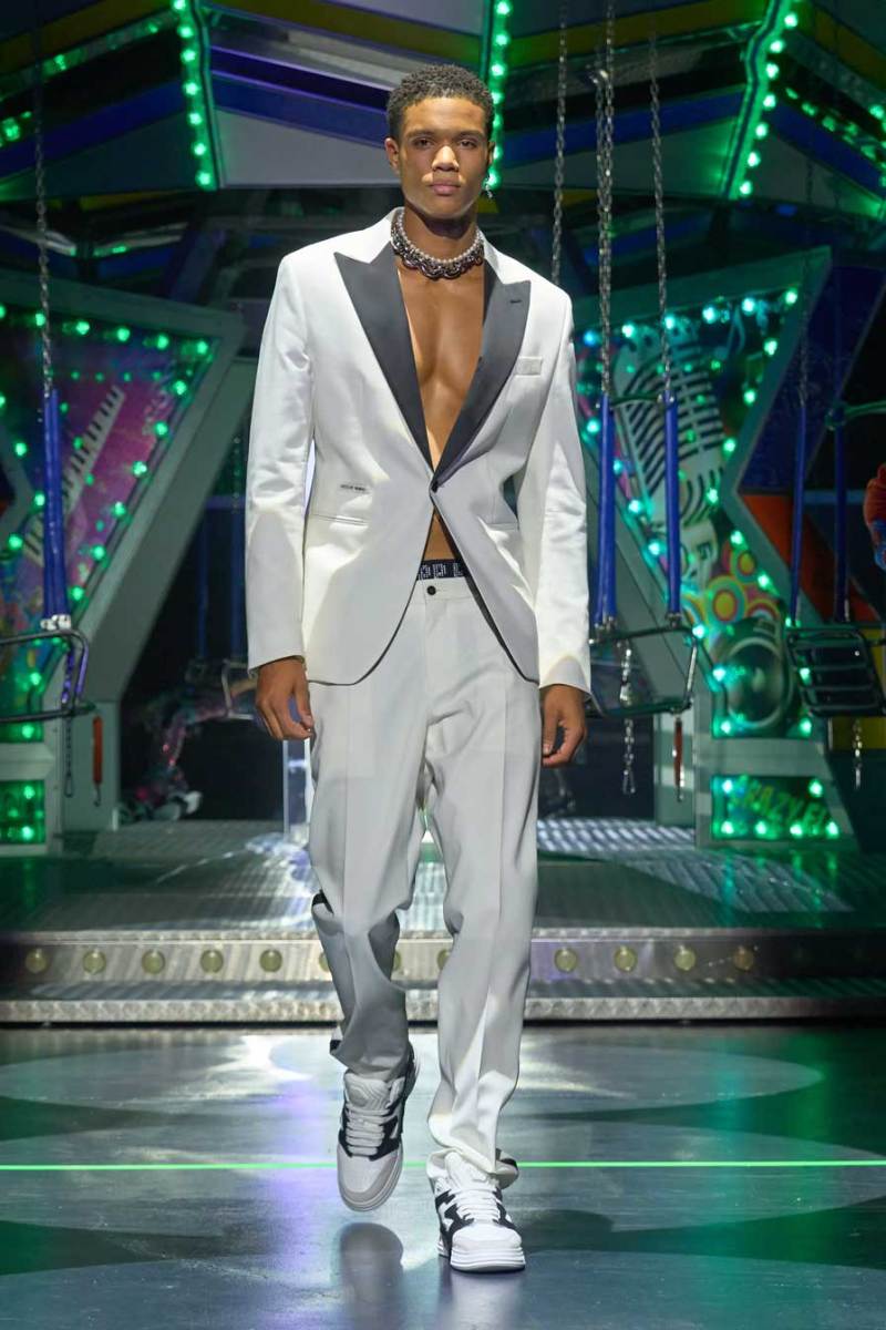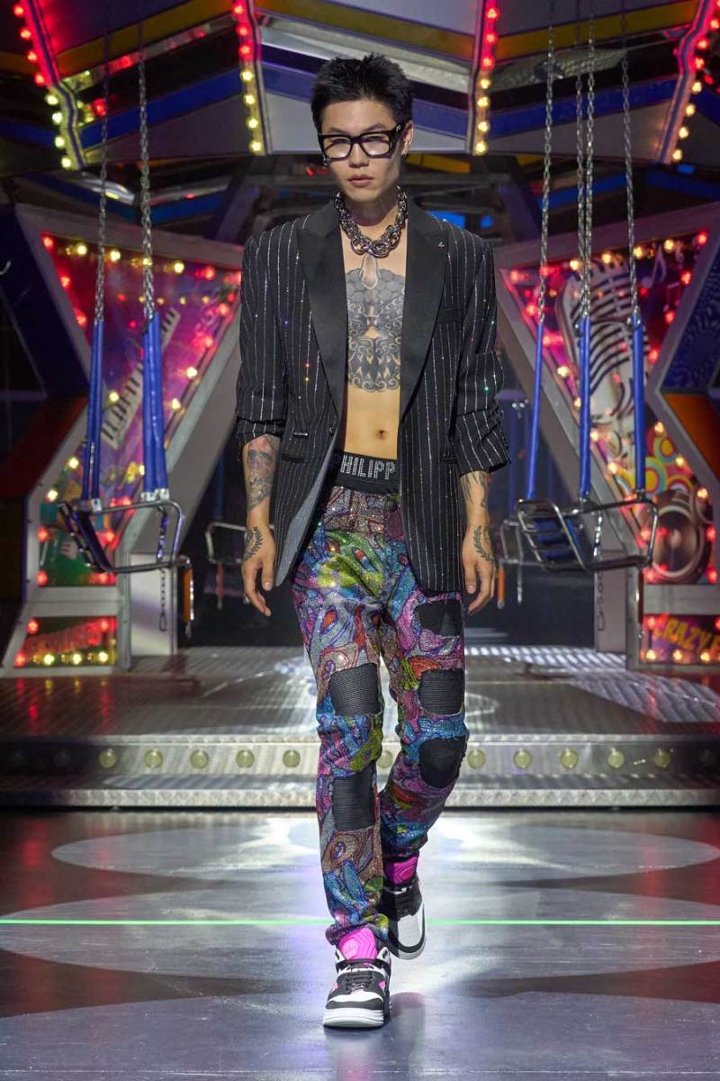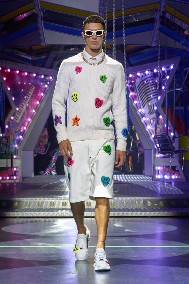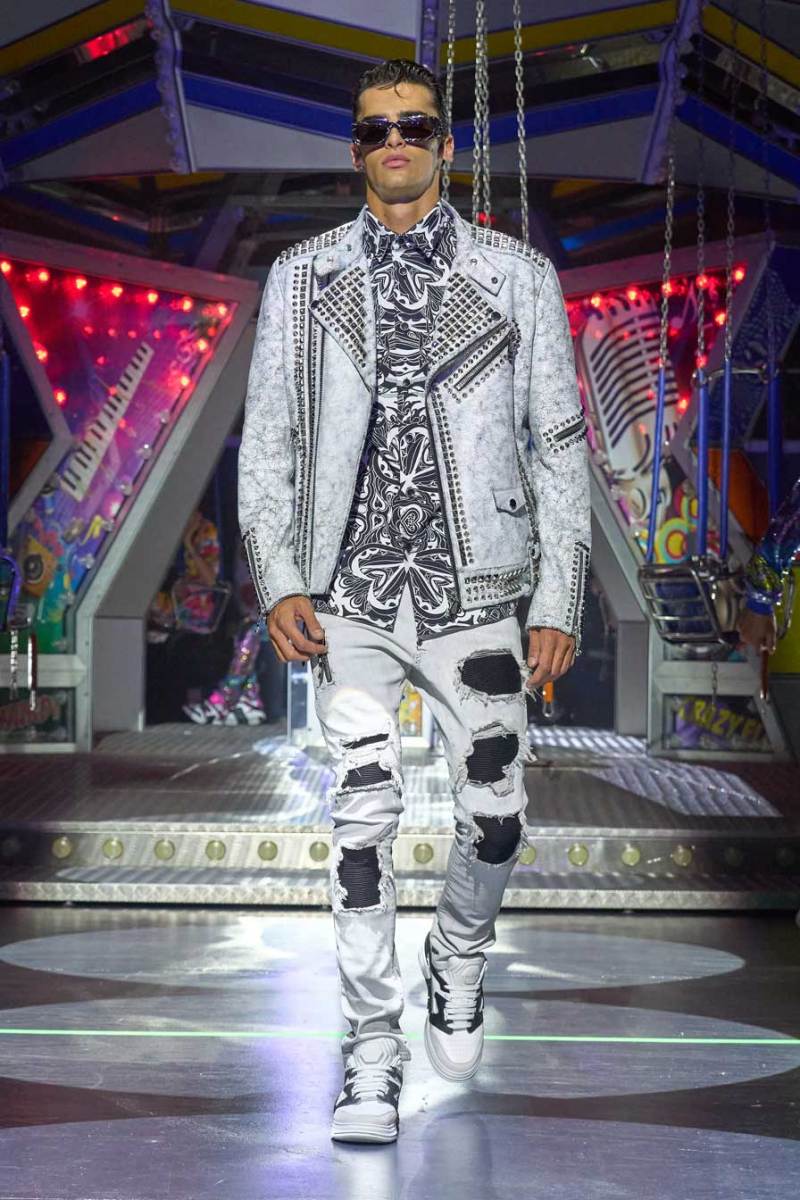 Un vortice di modelli divertiti sulla giostra ha poi segnato la fine della sfilata, mostrando l’ampio carosello di look e accompagnando l’ingresso dell’iconico Philipp in scena.