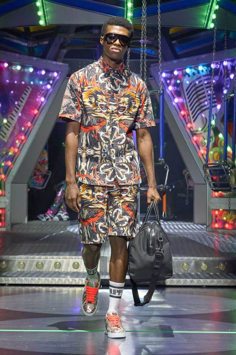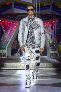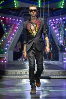 Non mancano poi proposte più “sobrie” con capi monocolore interpretati in un perfetto stile Plein. Frange a volontà, patch sorridenti e decori luccicanti trovano spazio tra le molteplici proposte dello stilista. E se nella prima parte dello show il protagonista è stato il colore, possiamo dire che nella seconda colori come grigio e nero hanno dominato la scena non passando inosservati.