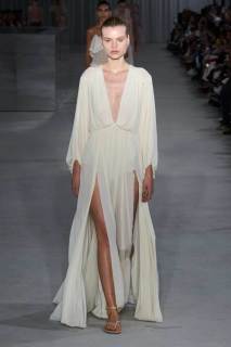 Un ritmo lento e naturale guida la sfilata di Lorenzo Serafini tra abiti tenui, leggerezza e un’eleganza sempre sofisticata. La location è semplice, scevra da qualsiasi tipo di sfarzo, un vero e proprio cantiere aperto ed in fase di rinnovamento ubicato in Via Cena 2.