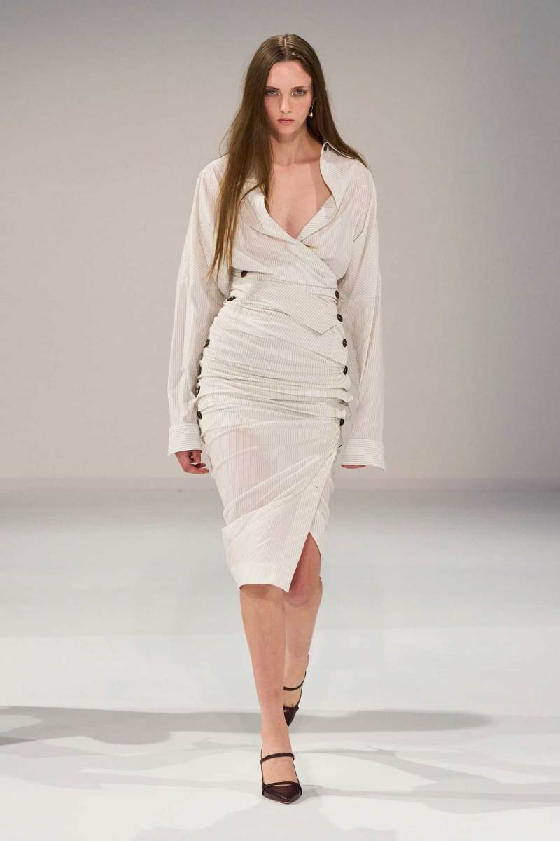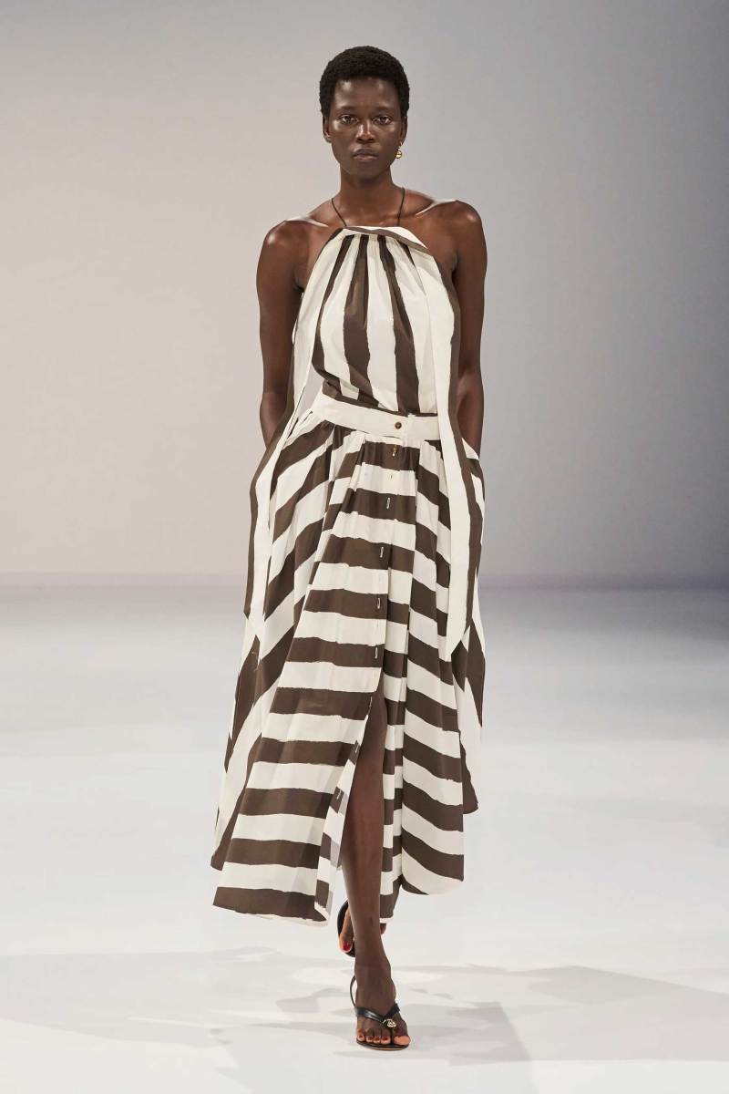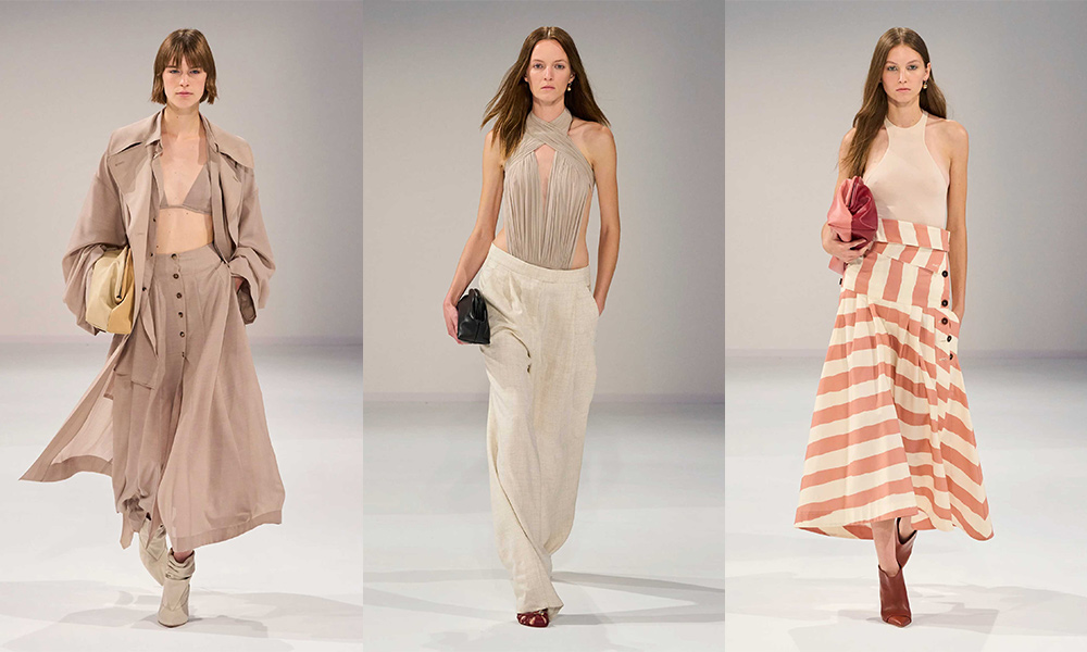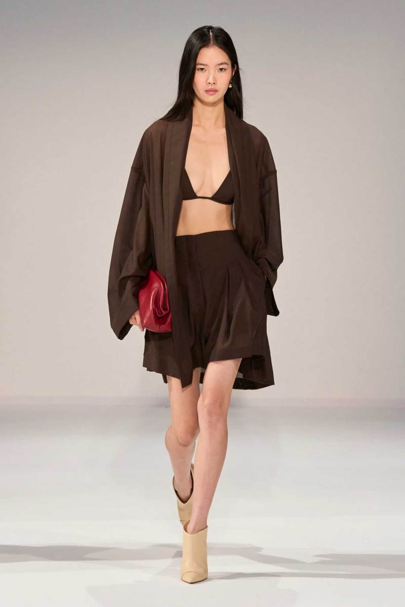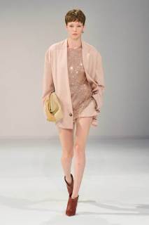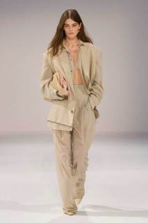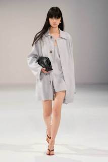 Gli articoli proposti nella nuova collezione Spring/Summer 2024 sono abiti dal taglio semplice, scamiciati, tailleur maschili, abiti sia a tinta unita che a grosse righe, giacché ampie, shorts: tutti capi che si rifanno a un aspetto soft e comfy.