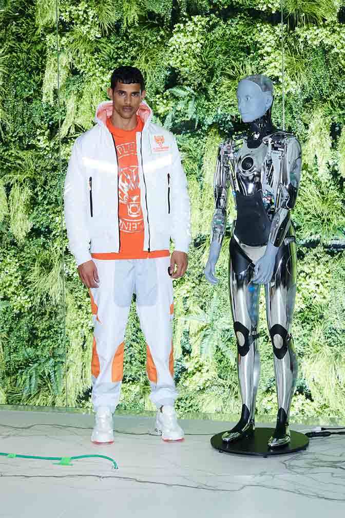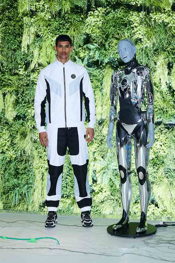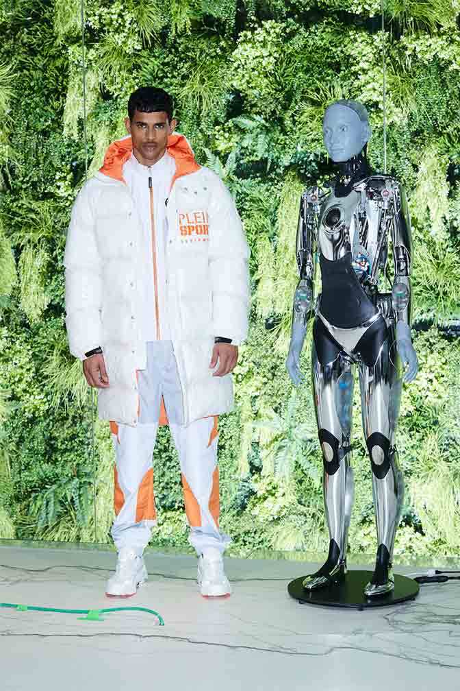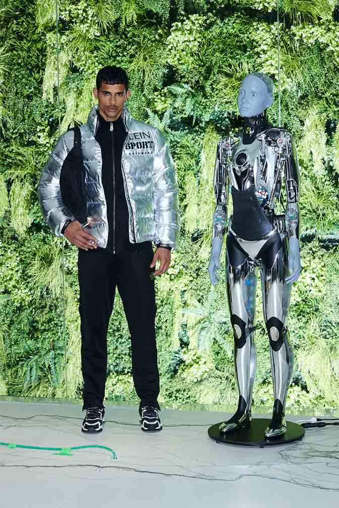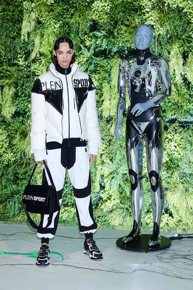 È Romeo 0.1., il primo robot umanoide dei soli tre al mondo, a dare il via alla sfilata Plein Sport, presentando poi la collezione sneakers creata nel Metaverso. Vediamo anche drop di lusso su NFT Auction House, Portion, wearables digitali progettati dai Crypto Kings. Si tratta di una combinazione di oggetti fisici e digitali alimentata da Portion, e avrà luogo al M.o.N.A. nel Metaverso.