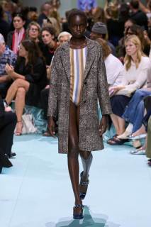 Gli accessori impiegati nella realizzazione dei look sono, dunque, i seguenti: occhiali da sole dalle lenti espanse, décolleté appuntite, berretti futuristici e cinture usate all’interno di borse. Ognuno di questi elementi contribuisce a donarci il punto di vista personale degli stilisti, nonostante possa andare contro l’idea classica che abbiamo del concept di primavera/estate.