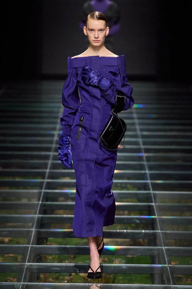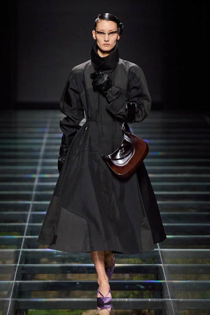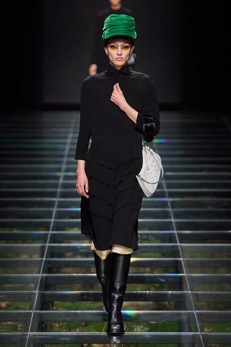 Le borse storiche firmate Prada, reinterpretate in chiave contemporanea, rappresentano un ponte tra passato e presente conferendo alla sfilata un senso di continuità e tradizione senza rinunciare alla modernità.