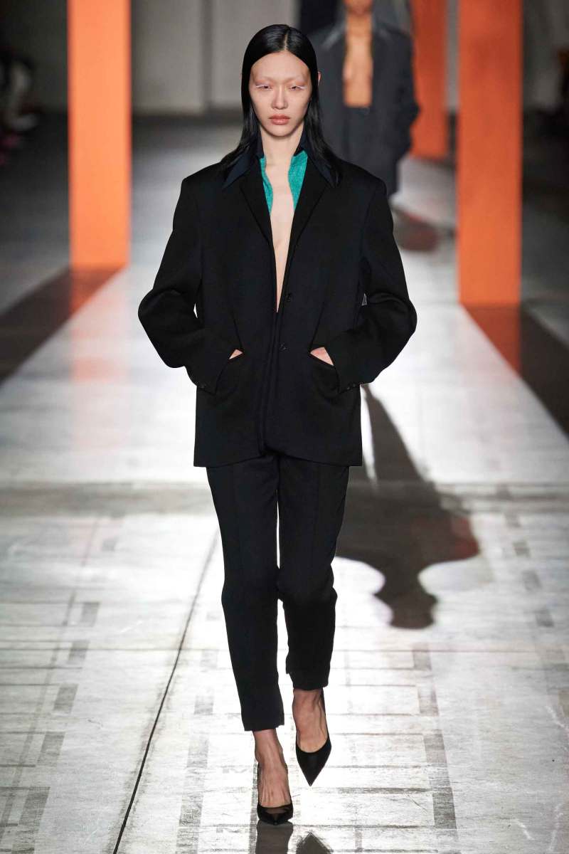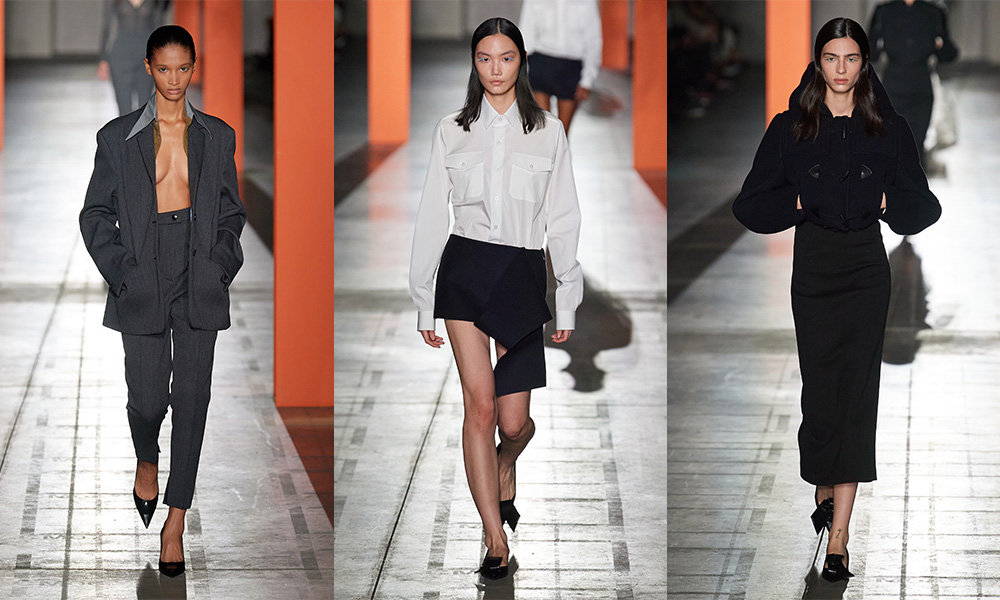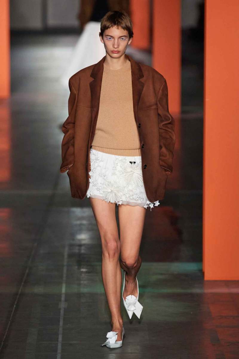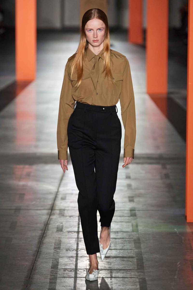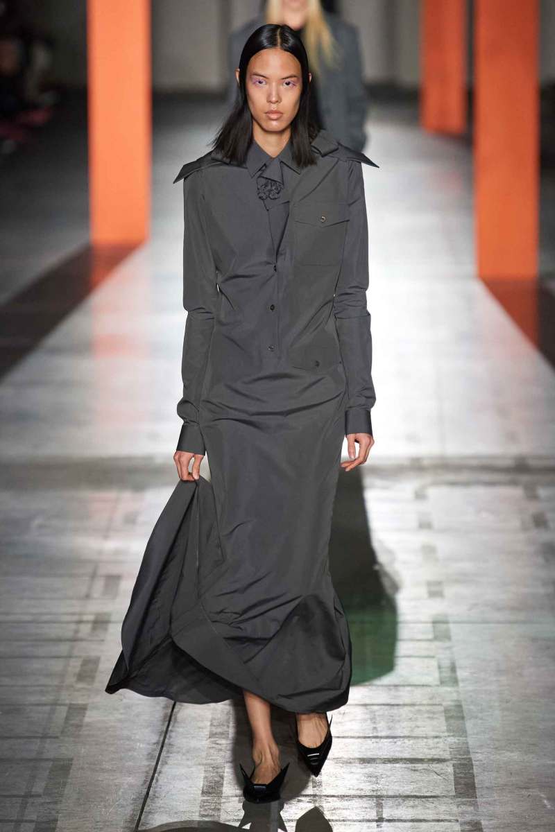 Il senso della nuova collezione AI 2023-24 firmata Prada è l’annullamento delle differenze tra abiti lavorativi e quelli da occasione speciale: questi capi possono essere indossati tutti i giorni indipendentemente dalla situazione. Vediamo abiti che si richiamano alle uniformi degli infermieri e altri che invece rappresentano una rivisitazione delle uniformi militari. Grande risulta inoltre essere l’attenzione per giubbotti e parka.