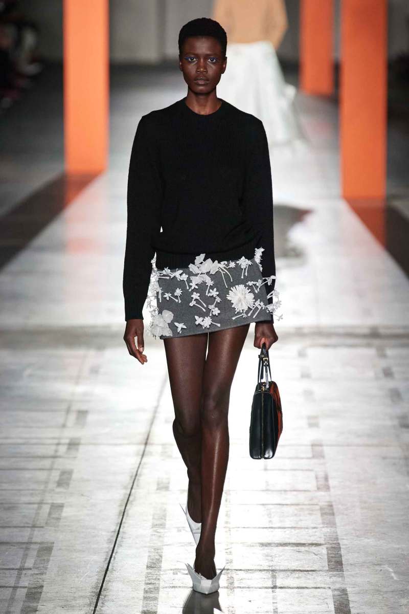 Da notare anche le varie decorazioni che ornano le gonne, tra cui spiccano i fiori in tessuto origami, a ricordare gli abbellimenti presenti sugli abiti da sposa: un evento unico diventa un abito da tutti i giorni. Forte e chiaro il messaggio che la Maison vuole comunicarci: la bellezza si trova anche nella semplicità.
