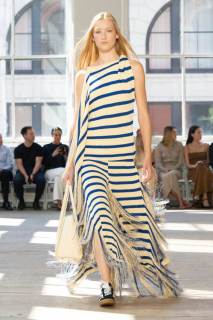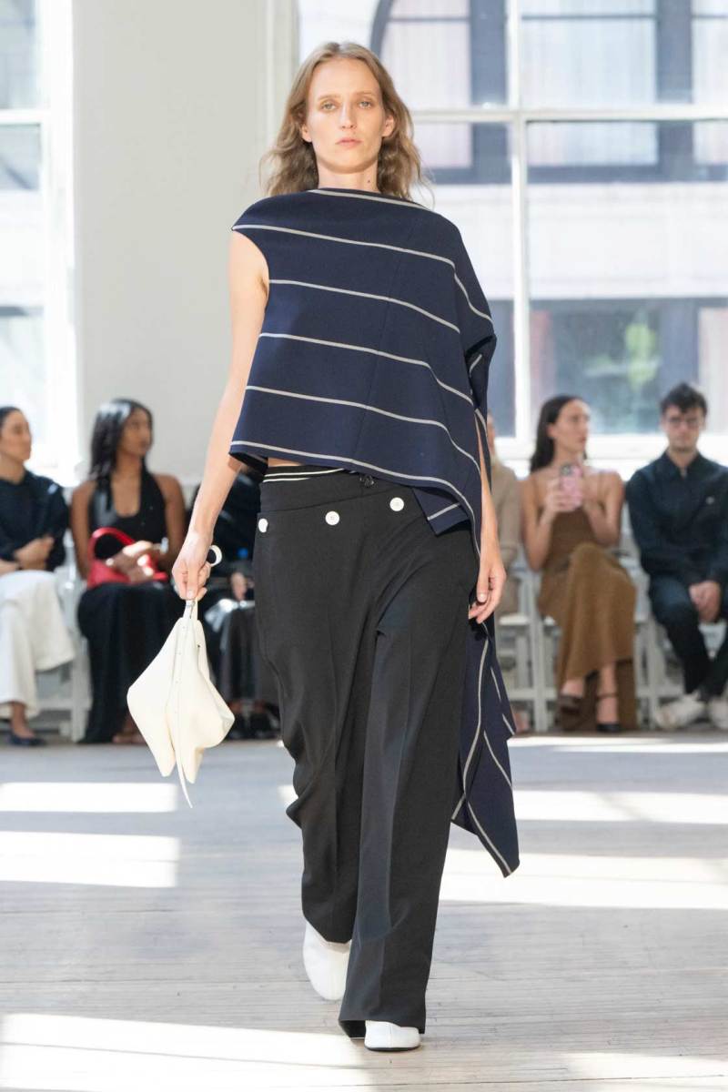 La sfilata di quest’anno non è stata solo un omaggio alla creatività americana, ma anche un tributo alla sperimentazione audace che caratterizza il duo newyorkese. In un ambiente ricco di influenze artistiche, le creazioni hanno rivelato una miscela unica di texture, colori e stampe. Lavorando sul filo sottile tra minimalismo e decorazione, Hernandez e McCollough hanno portato in passerella una serie di pezzi che sembrano ispirati alle opere del pittore astratto Barnett Newman. Le frange abbondanti, le asimmetrie contrastanti e le fantasie check e rigate hanno arricchito la collezione, con un tocco di eleganza che ricorda l’abbigliamento nautico.