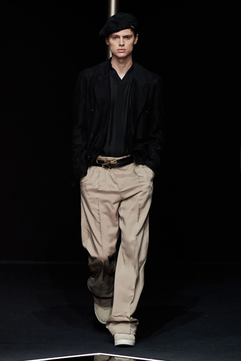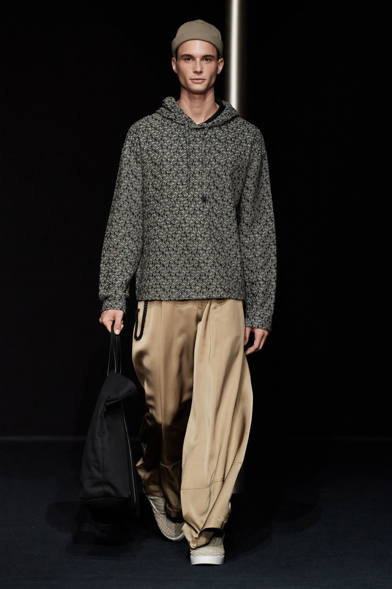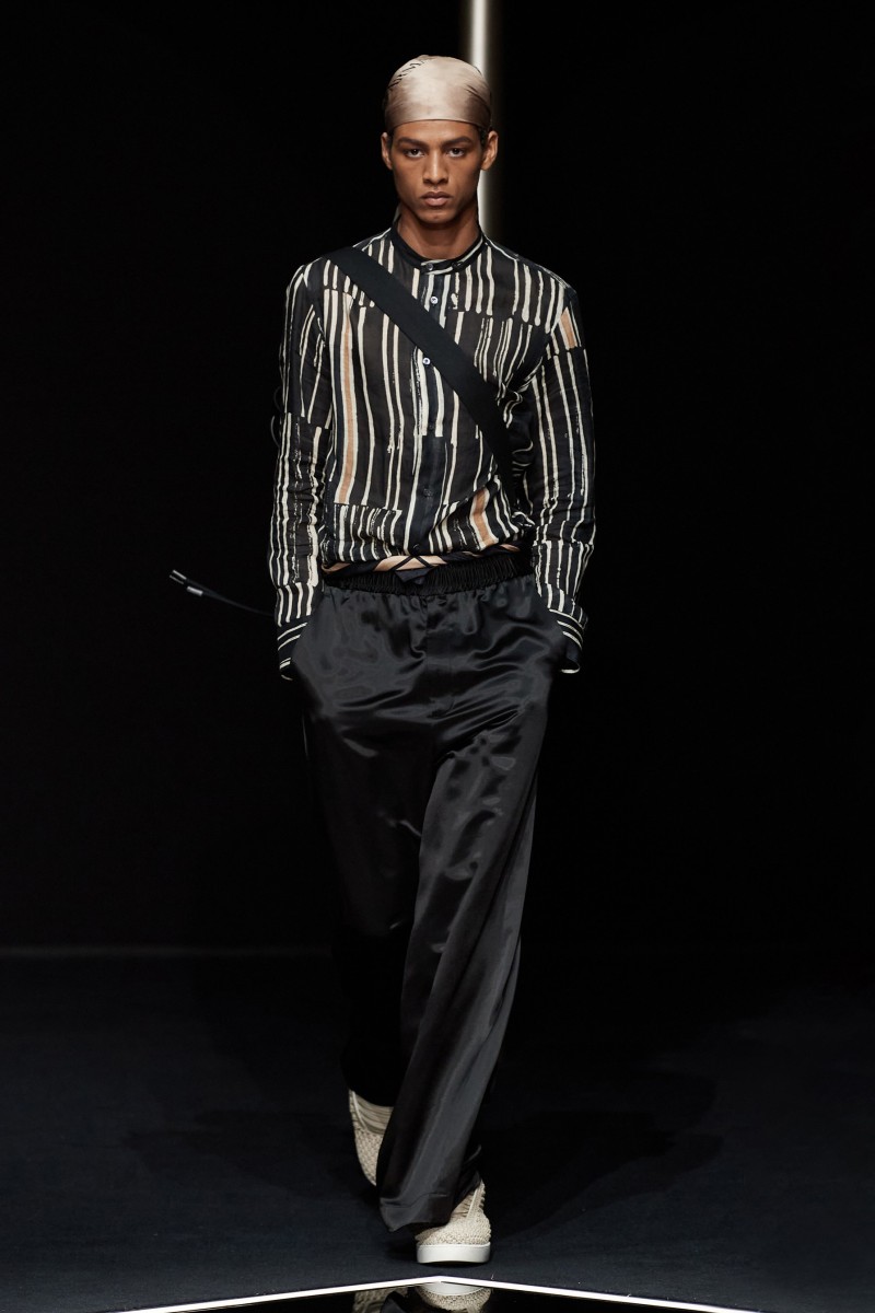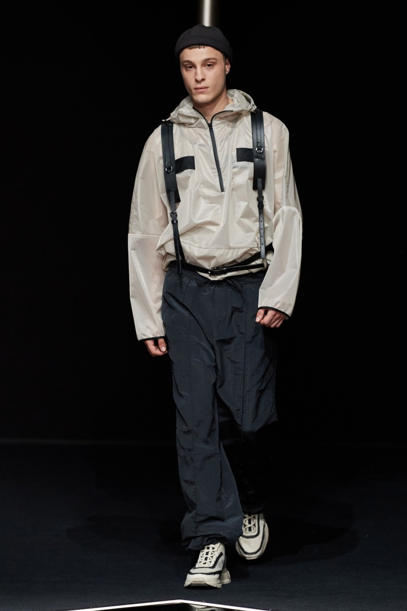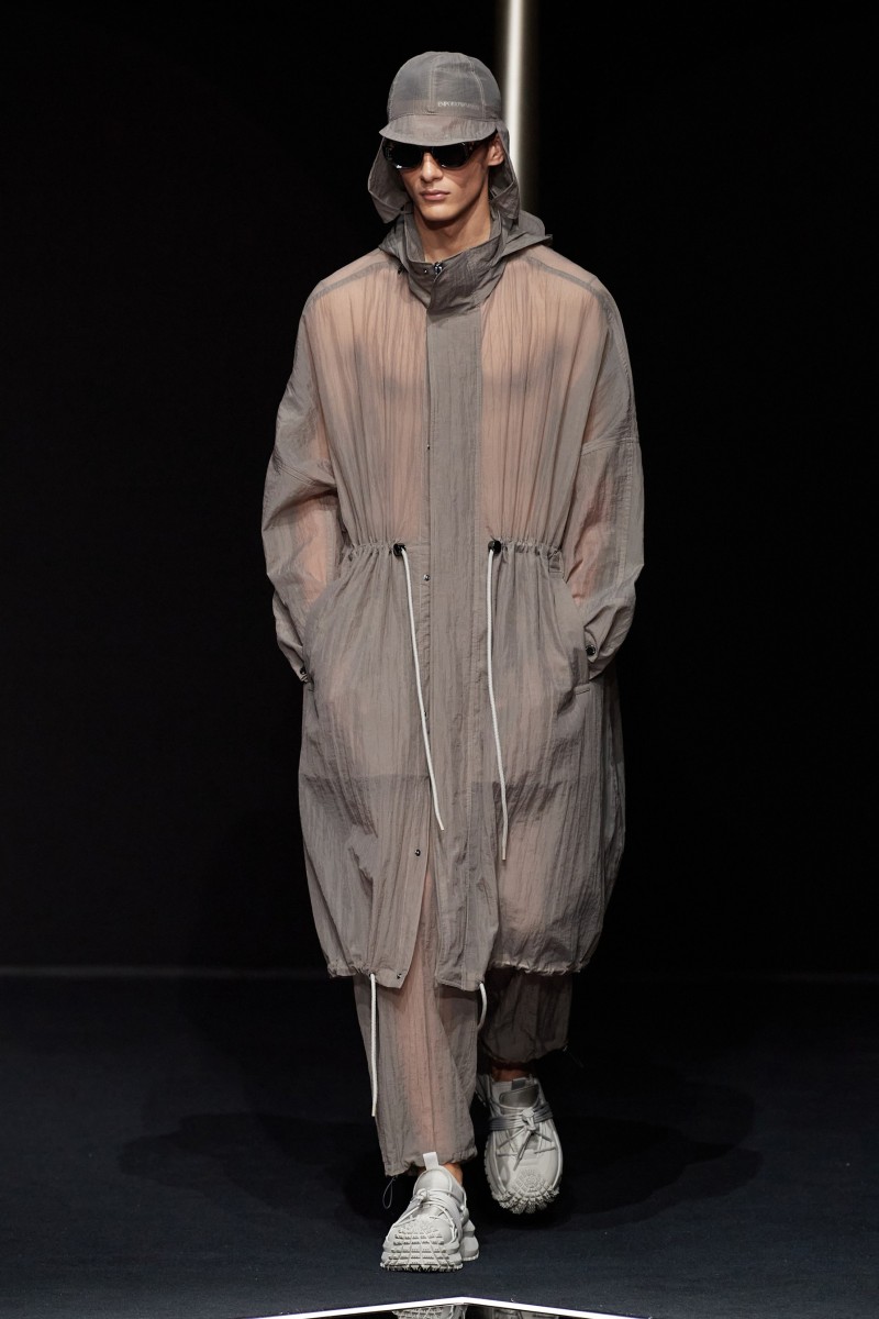 Ma Emporio Armani è anche performance e abbigliamento tecnico che unisce funzionalità e stile. Spazio quindi a capi antipioggia, felpe e sneakers che culmineranno con una sorpresa alla fine dello show.
