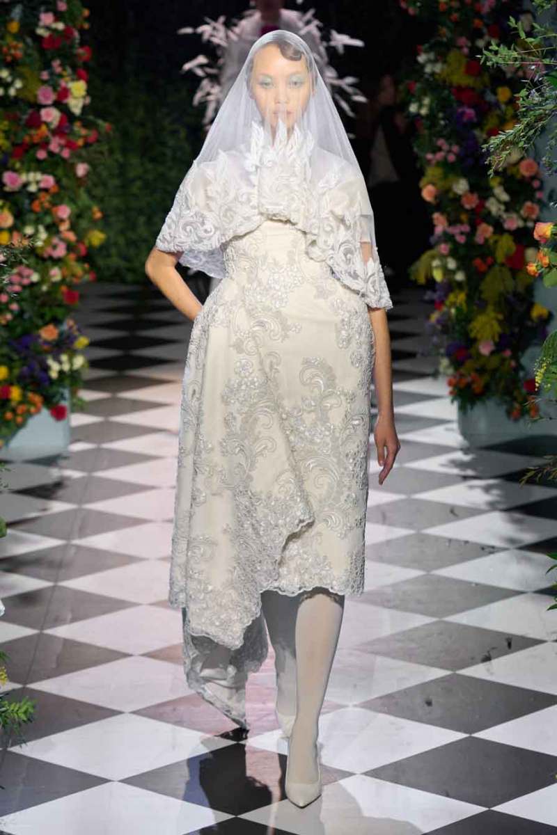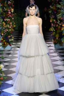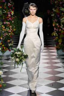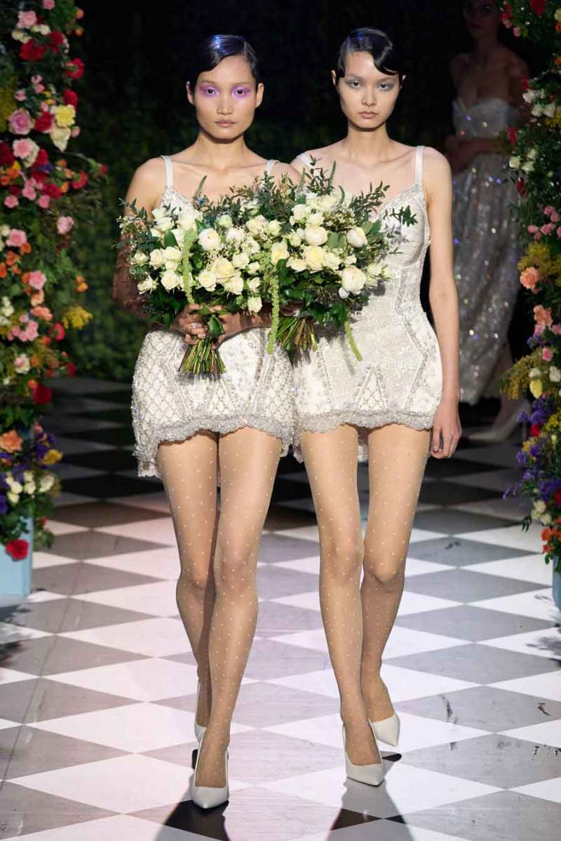 Durante lo show vengono mostrati modelli di vestiti da sposa in bianco, sia più tradizionali e classici con velo annesso, che alcuni più moderni e sperimentali, caratterizzati da ampi volumi. Non mancano in passerella tubini in maglia decorati con perle e minidress con fantasia floreale. Gli abiti vengono attentamente decorati con piume colorate, perle e applicazioni varie, tutte molto chic. Ampio spazio anche agli Swarovski che impreziosiscono i capi e sprigionano lucentezza.