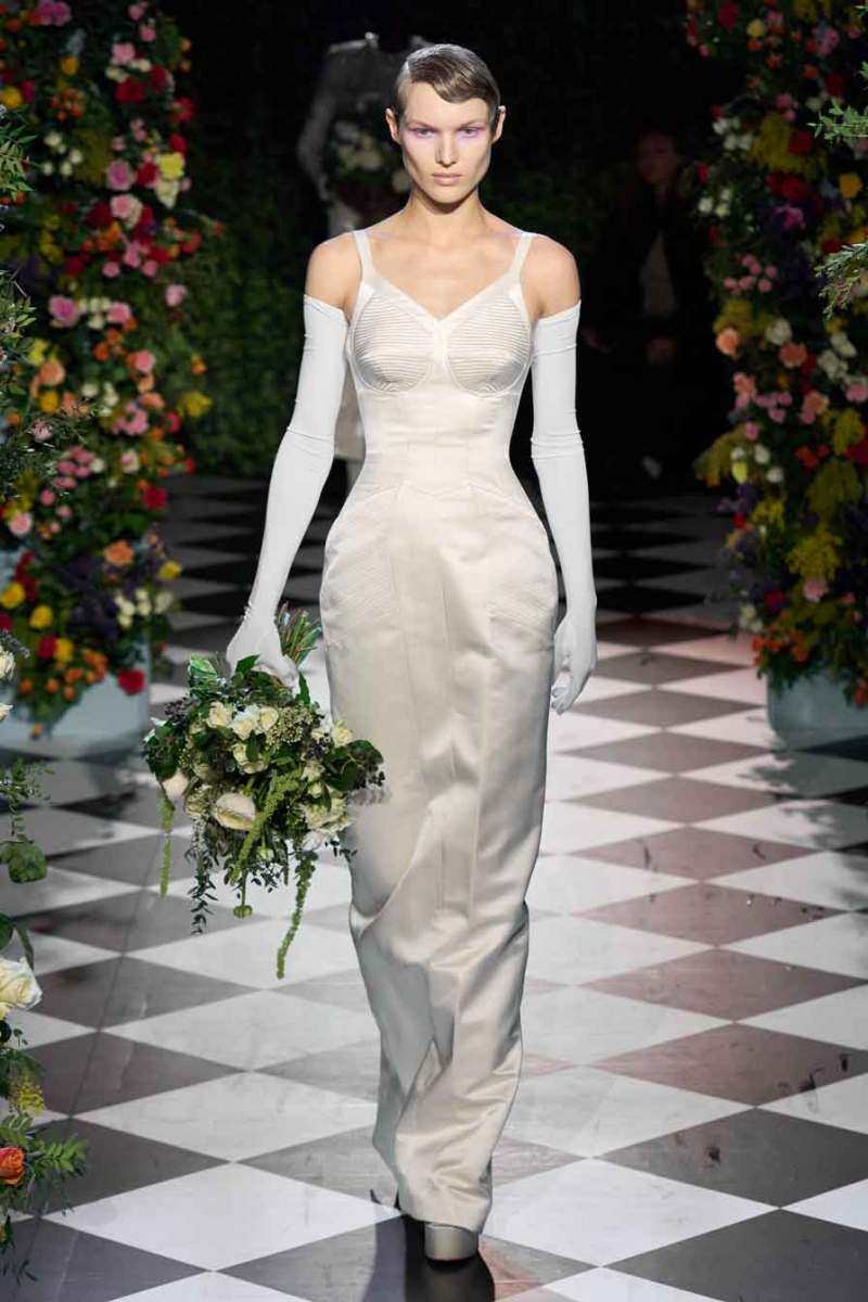 Dal momento in cui Quinn ha ricevuto il Queen Elizabeth II Award for British Design, la sua sfilata è diventata un evento irrinunciabile sulle passerelle londinesi. Questa volta il latex viene sostituto da accenti più raffinati che si legano all’haute couture.