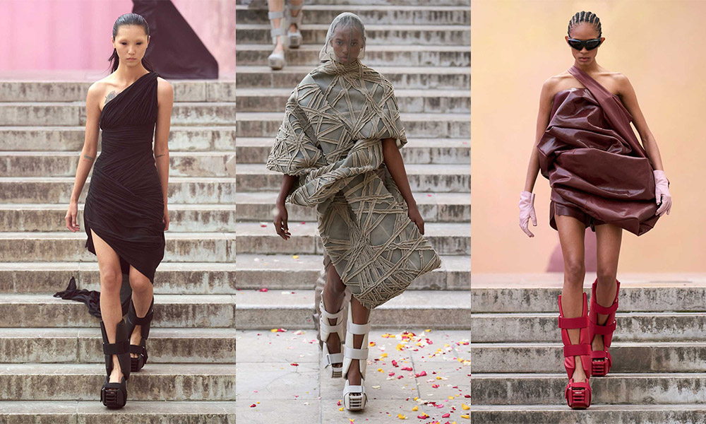 La collezione è intitolata “Lido” e si riferisce non a caso al Lido di Venezia, luogo tanto caro a Owens. In passerella viene espressa sì una forte preoccupazione per le condizioni del Pianeta, ma ancor di più la ricerca di una via di fuga e di speranza.