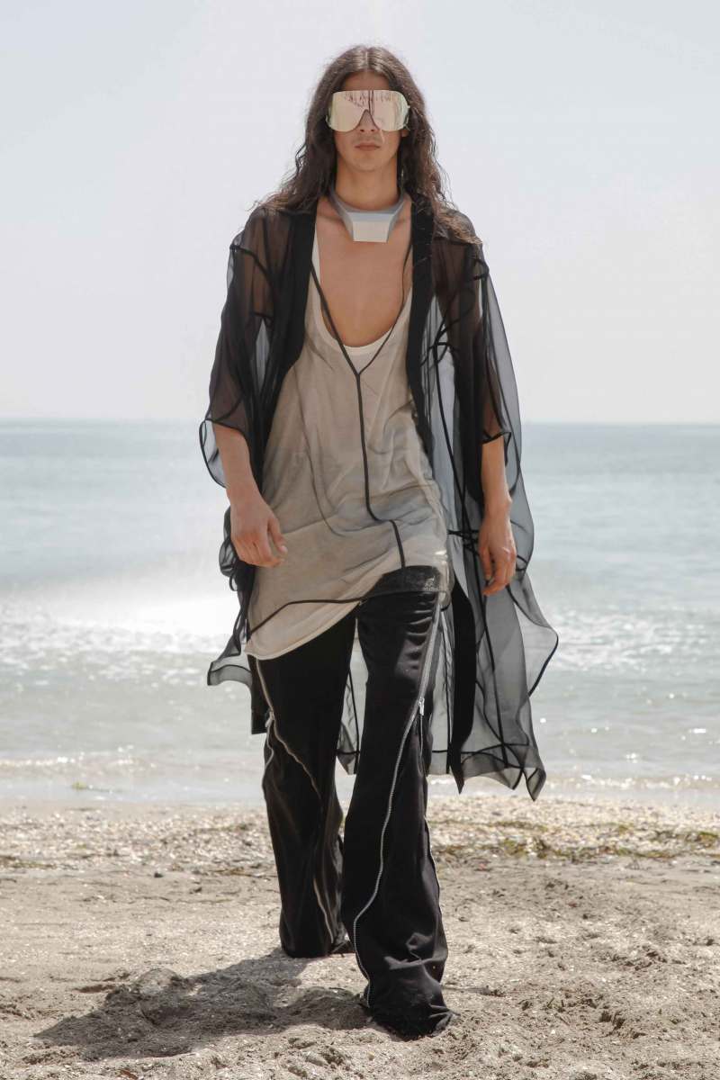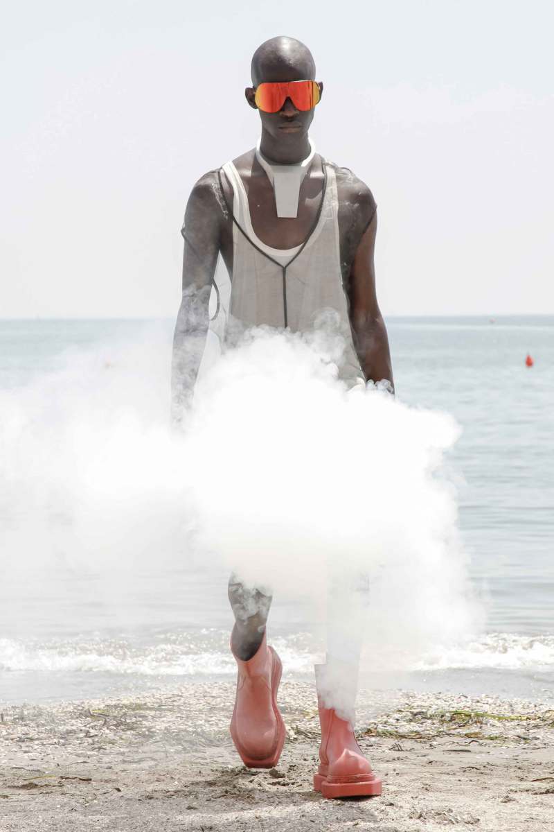 Sulla passerella di Fogachine si alternano una dopo l’altra le creazioni di Owens in un’atmosfera da film post apocalittico. Un’esperienza immersiva che travolge il visitatore nell’universo sacrale di Rick Owens.
