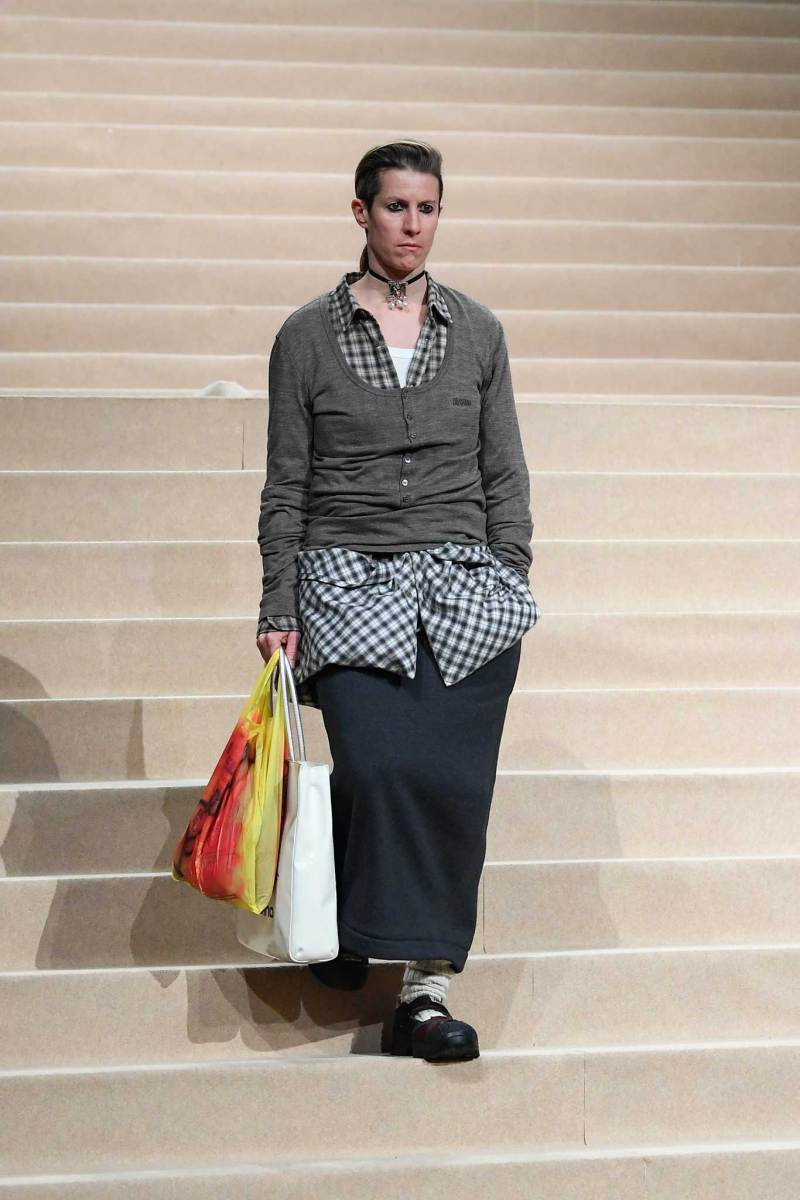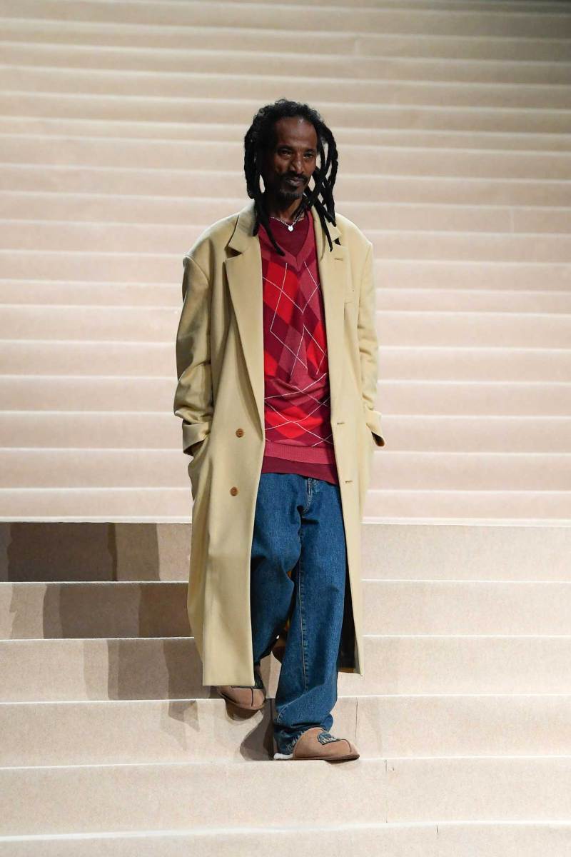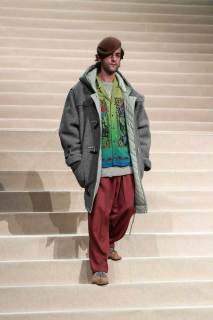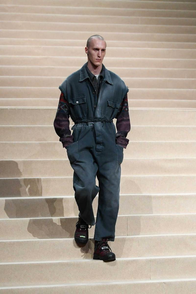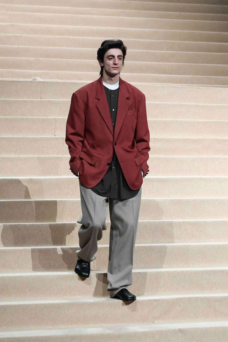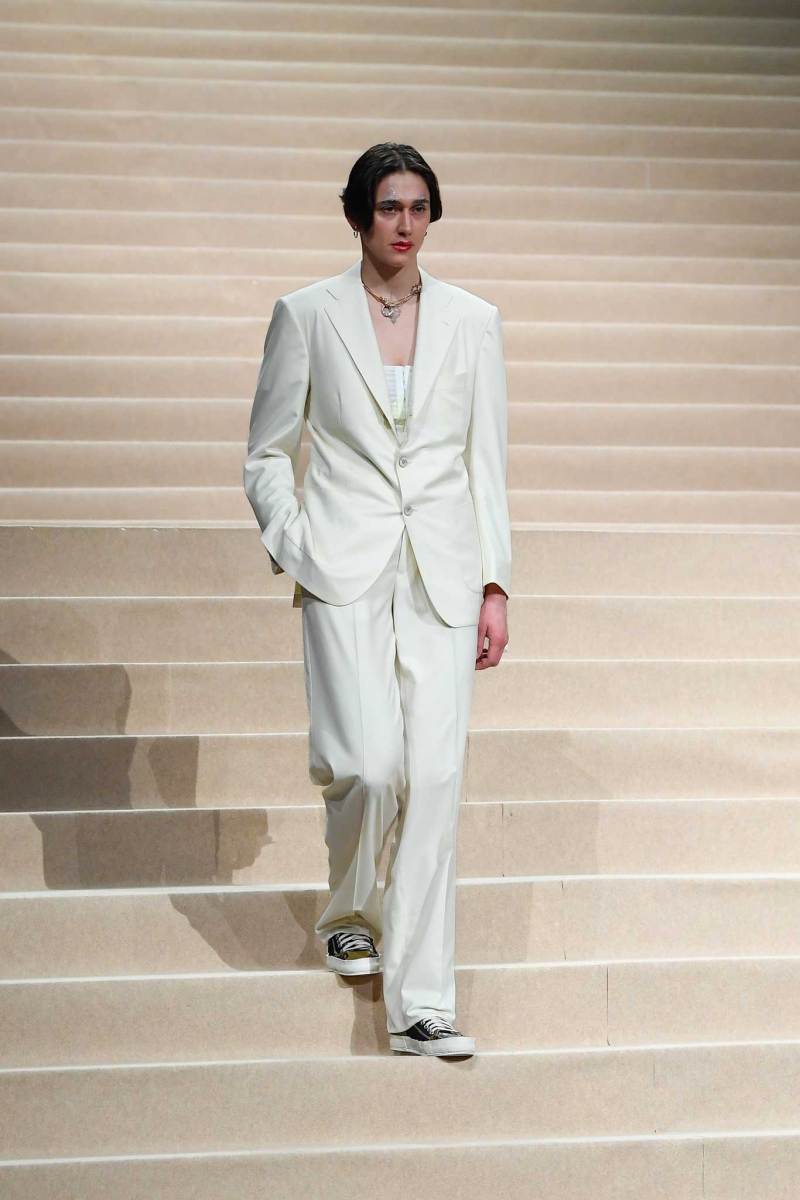 Una sfilata emozionante, a tratti drammatica. Al termine, l’essenza del “rising”: i modelli camminano in salita sulla scalinata dando le spalle agli spettatori, con un’aria di riflessione faticosa.