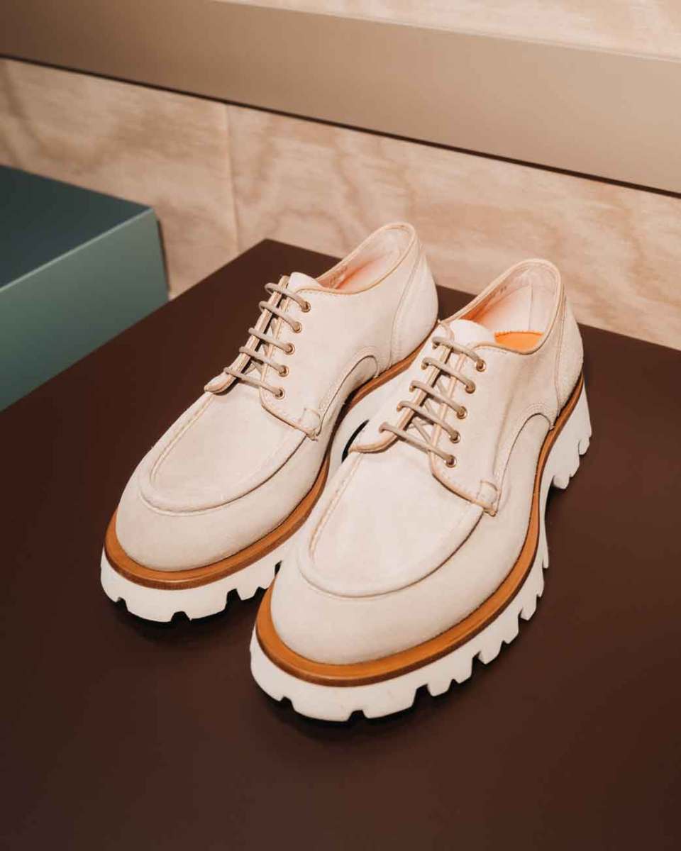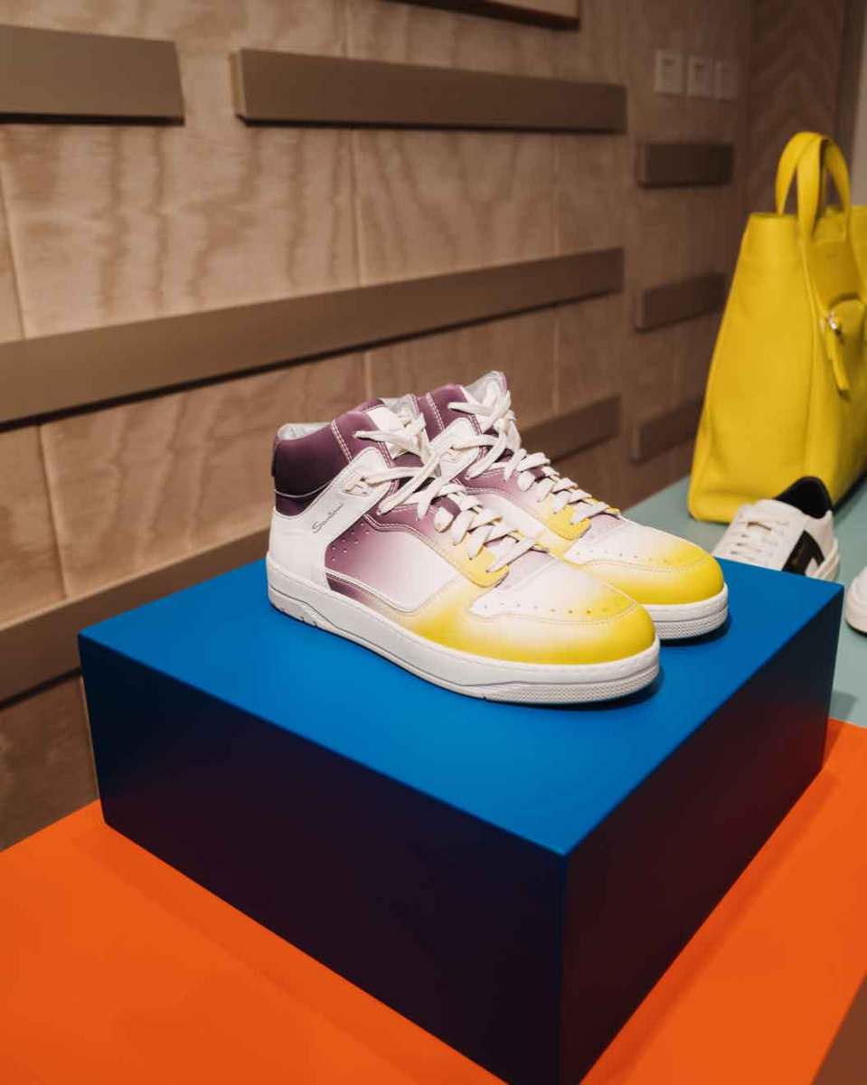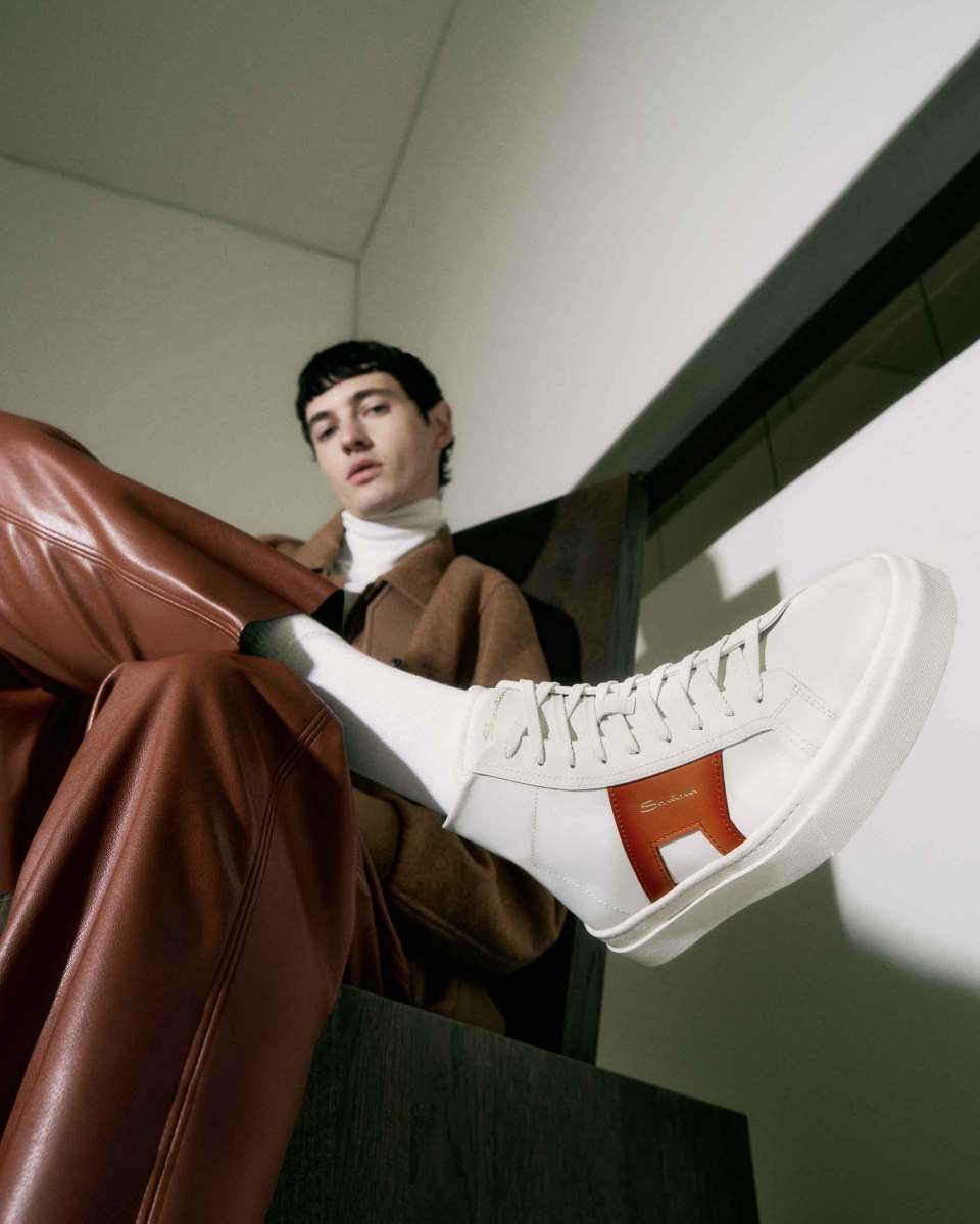 Passando alla parte più casual della collezione, tra le sneaker spiccano le Double Buckle Sneakers. I colori iconici vengono affiancati da due versioni inedite, una in baby blue e l’altra in baby pink. La novità assoluta è rappresentata da Hy-Run, la sneaker nata dalla fusione di una scarpe da basket e una da running. La nuova collezione è dunque un viaggio cromatico tra le nuove creazioni di Santoni.
