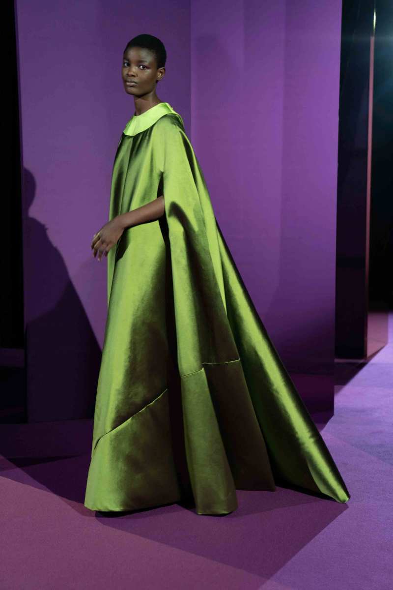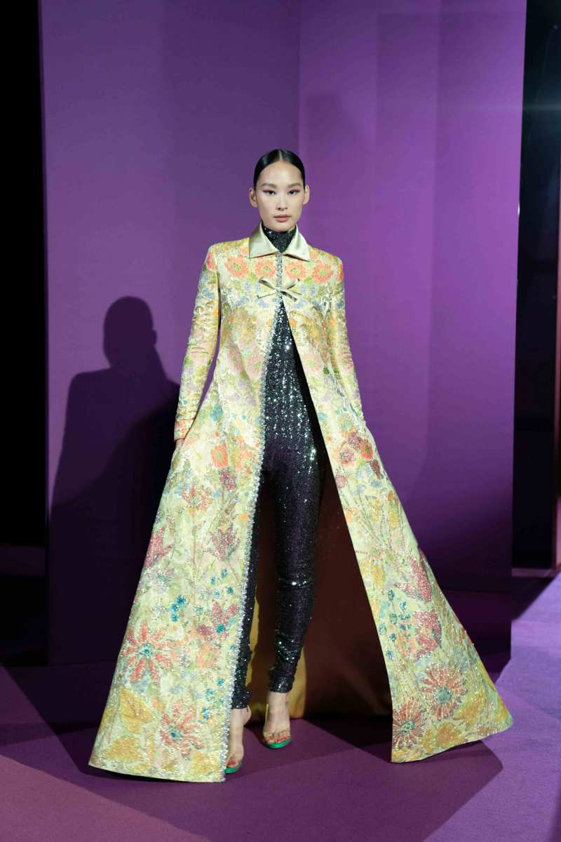 I colori dei capi vanno poi di pari passo con la voglia di divertimento sfarzoso che trasuda dall’intera collezione. Il verde della vegetazione brilla di strass e paillettes e si accosta al rosa tenue dei boccioli e al giallo aranciato del cartamo. Tessuti sontuosi come il raso duchesse e il crepe di seta sono ideali per far risaltare tonalità brillanti come il giallo narciso e il turchese, o profonde come il blu notte.