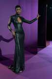 Monumentali cappe concedono un rigore quasi sognante alla figura, mentre uno smoking doppiopetto col pantalone a zampa esce dai canoni della formalità ammantandosi di lurex e raso dorato.