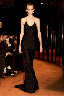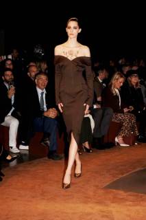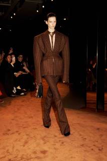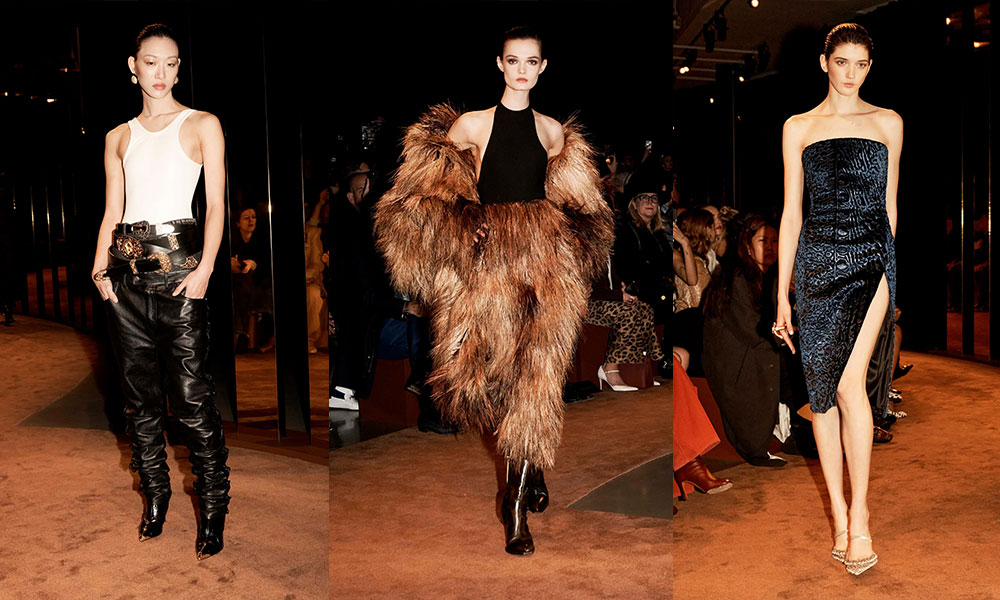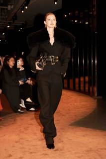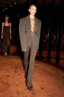 La collezione ha celebrato l’artigianalità e il savoir-faire della maison attraverso materiali ricercati e dettagli straordinari. Pelle scolpita, velluto sontuoso e inserti metallici hanno conferito un’aura preziosa ai capi, mentre gli accessori hanno rievocato il codice surrealista della maison: speroni trasformati in gioielli, fibbie dorate dalle forme scultoree e dettagli anatomici che emergono come amuleti. Il tutto è stato esaltato da una palette intensa e sensuale, dominata da neri profondi, oro scintillante e calde tonalità terrose.