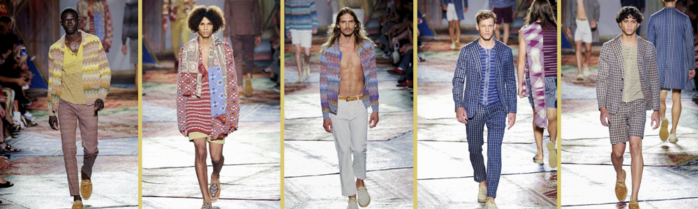 È un uomo cosmopolita e curioso quello presentato da Missoni per la prossima stagione estiva, ancora una volta si respira nella collezione il fascino del surfista, unito ad un tocco di edonismo bohèmien. Impegnato in un viaggio tra le diverse culture che incontra, la collezione maschile trasla questa essenza attraverso l’uso fantasioso di righe Breton, pattern geometrici d’ispirazione marocchina, tagli morbidi, tessuti leggeri e colori intensi dal sentore esotico.