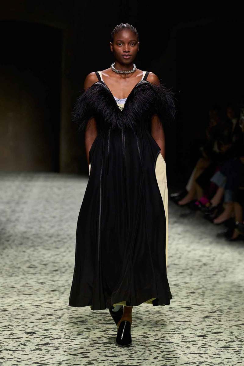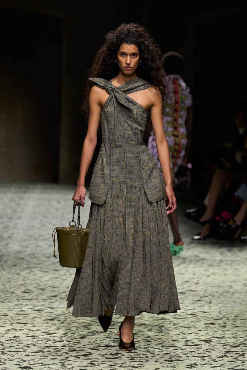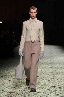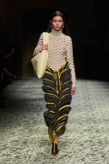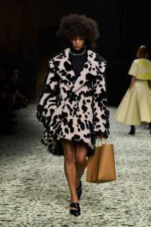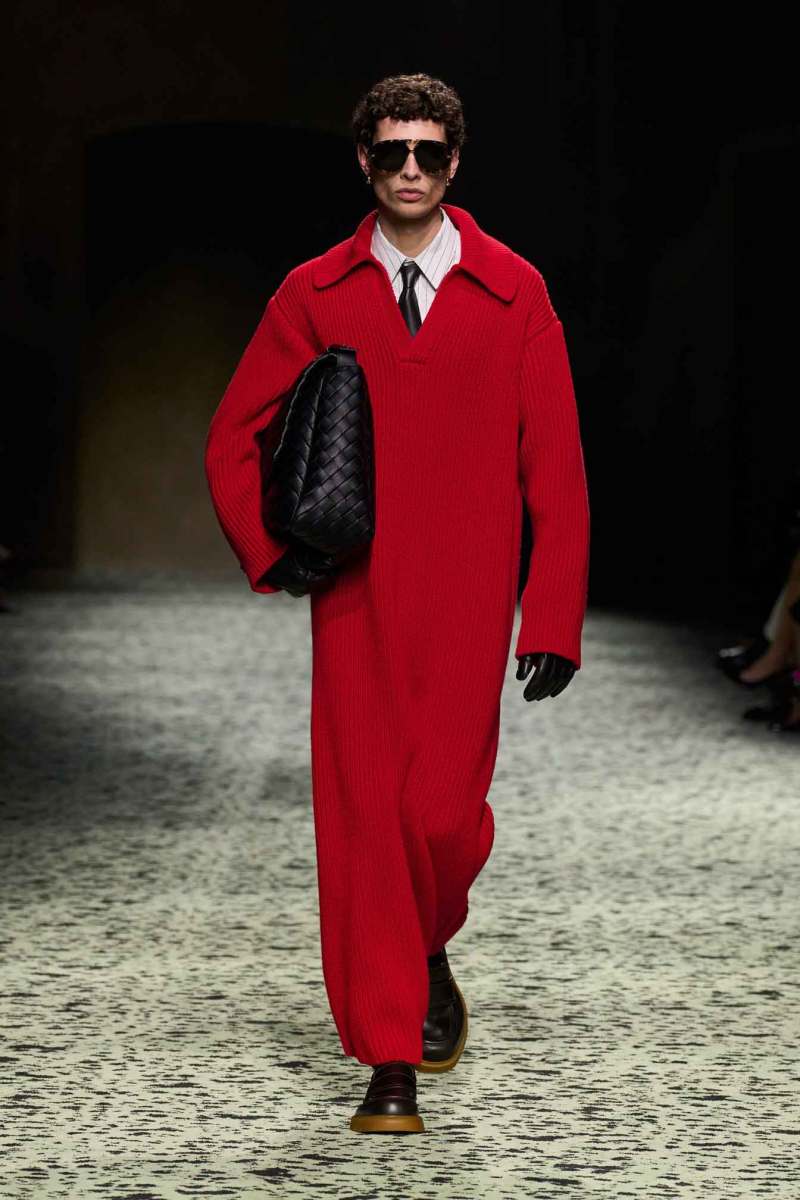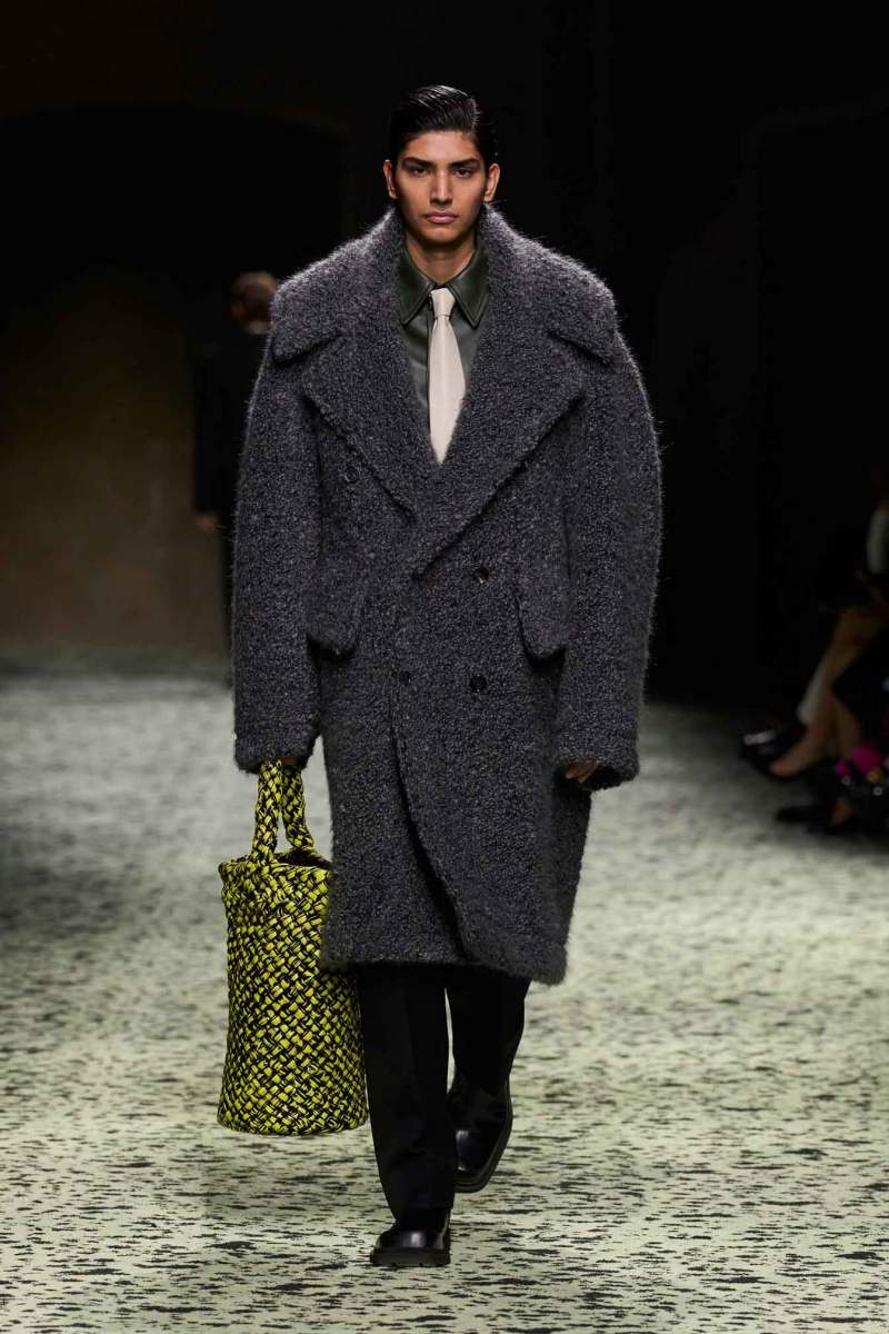 Quello che sicuramente traspare è il forte tributo all’artigianalità italiana. Il vetro di Murano che va a comporre le maniglie della celebre bag Sardine. Abiti e lavorazioni in pelle che prendono parte a un ironico teatrino dove delle scarpe in pelle appaiono come calzettoni in lana.