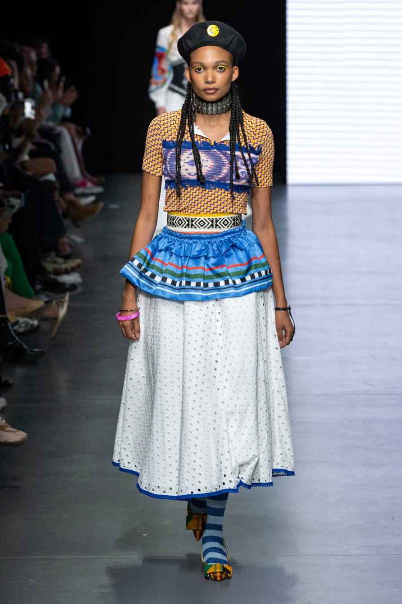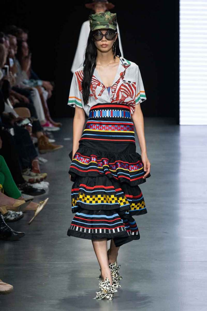 Culture diverse hanno creato in passerella un’atmosfera magica e varia. All’inizio della sfilata sono stati presentati i capi in maglieria e in denim di Edward Buchanan, seguiti dalla capsule collection dei “Fabulous Five” e dai nuovi look firmati Stella Jean. Memorabili anche le creazioni in rafia di Akbaraly e della newyorkese Stewart, che ha lavorato con i rifiuti in plastica; e ancora, le scarpe particolari di Poorswani e i costumi tradizionali e hip-hop di Gaeun.