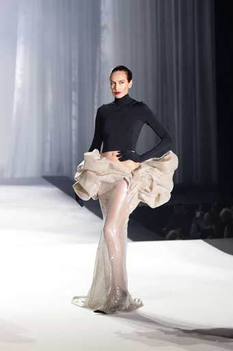 Stephane Rolland presenta la sua ultima collezione nella storica Salle Pleyel, e rende omaggio a Parigi e all’amore. Ispirandosi alle fotografie in bianco e nero di Brassaï e ai versi poetici di Jacques Prévert, ha creato una sfilata magica e incantevole. La colonna sonora, con brani di Edith Piaf e Nat King Cole, ha aggiunto un tocco emotivo indimenticabile.