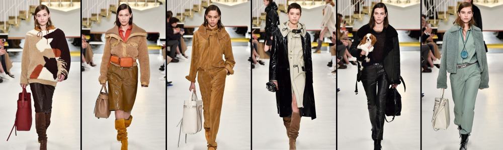 Apre la sfilata Gigi Hadid accompagnata da un fido bulldog francese; oltre che all’amore incondizionato per i cuccioli, Tod’s si fa portavoce di quello per gli accessori, immancabili nel fashion show. Ogni outfit è completo di borse di tutte le dimensioni, in pelle lavorata, scamosciata o in montone; alternate a lussi di cuoio extra small, capienti al punto giusto; pensate per accompagnare la donna nella routine, combinando comodità e ricercatezza.