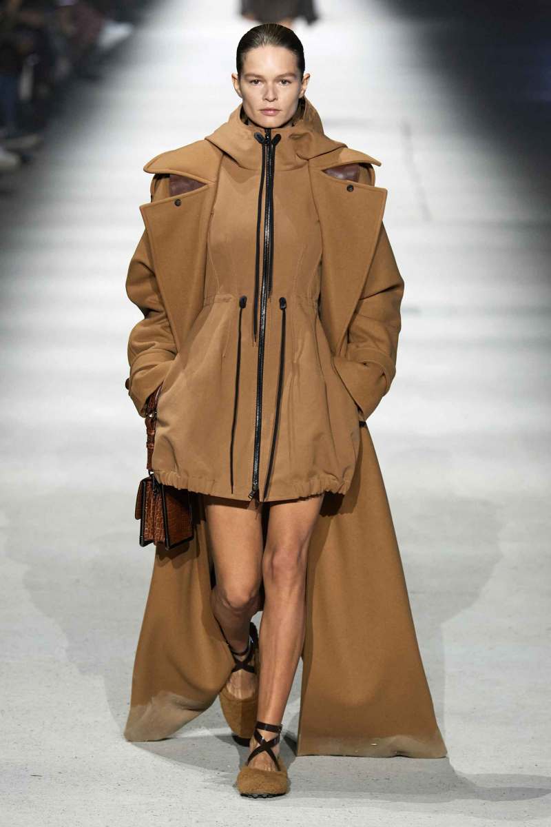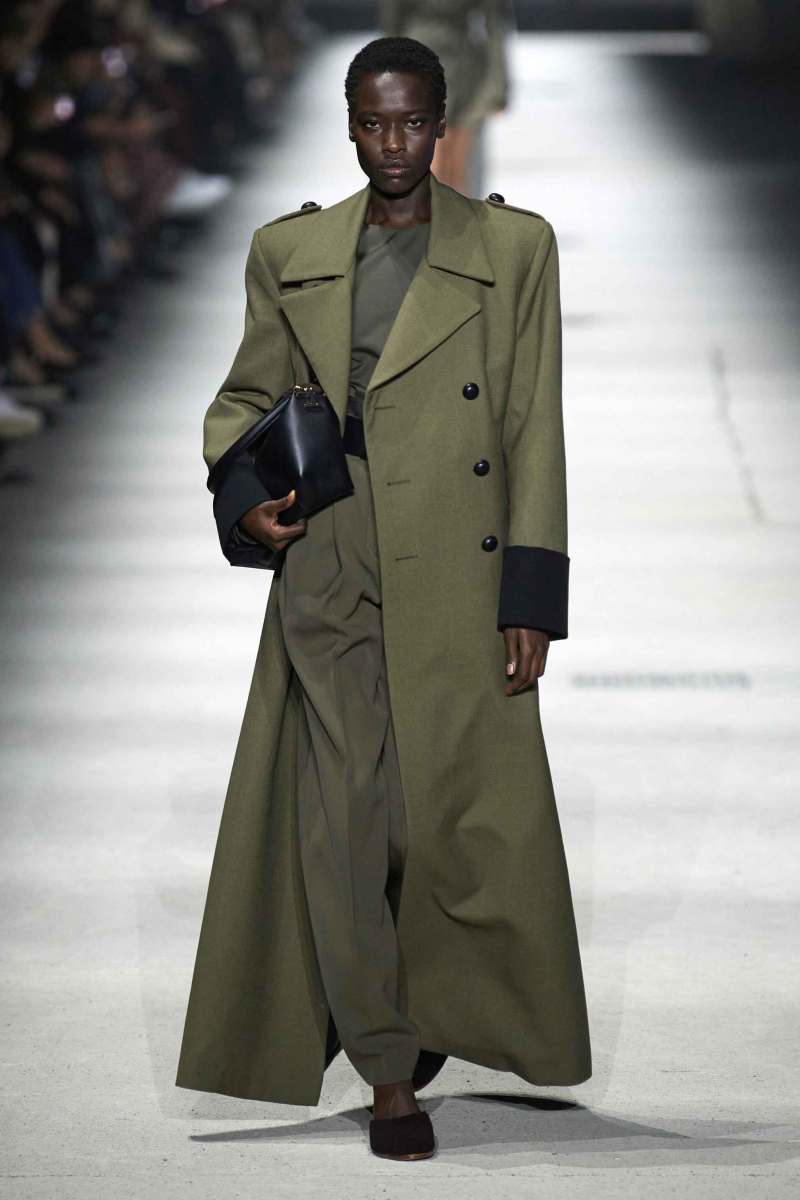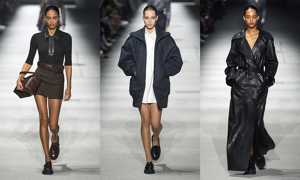 Tra i capi intramontabili troviamo abiti maschili gessati, cappotti morbidi e oversize lunghi fino a terra, il peacoat con bottoni ricoperti in pelle che richiamano i gommini, marchio di fabbrica del brand Tod’s, parka e bomber corti e avvitati dai dettagli couture, maglieria avvolgente e femminile e mini-abiti in pelle lucida. E poi ancora, rifiniture in pelle e cinture con dettagli tecnici.