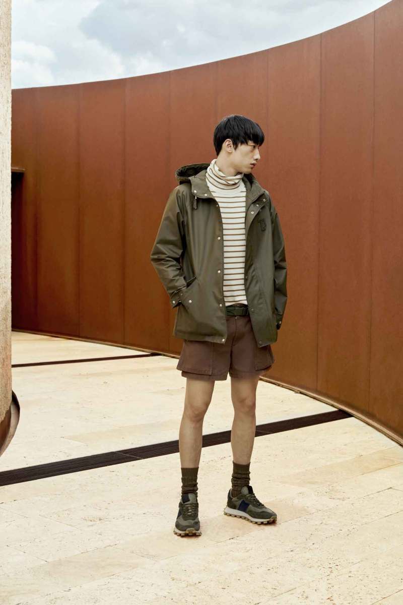 La collezione in particolare prende ispirazione dalle architetture e dai colori dei tradizionali paesaggi di campagna italiani. Per questo nella maggior parte dei look prevalgono tinte calde e nuance soft e naturali. Nei tessuti preziosi e materici, troviamo le sfumature del marrone, il colore della terra bruciata dal sole, gli écru delle pietre levigate dal tempo e i verdi della vegetazione mediterranea. Si va a definire un guardaroba contemporaneo e autentico, fatto di linee armoniose e proporzioni. La collezione è pensata per il tempo libero, concentrandosi su capi da giorno dallo stile rilassato ma al contempo raffinato. Non mancano i capi più sportivi: le nuove sneakers 1T, le felpe oversize e i parka.