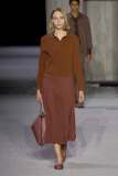 Colori caldi, terrosi, si sono presentati attraverso diverse sfumature di beige, color ruggine e rosso. Trench, chemisier e pencil skirt sono stati gli articoli più apprezzati di questa nuova collezione. Anche le calzature hanno meritato attenzione: ballerine di raso ornate da fiocchi, gli iconici gommini e sabot minimal hanno completato i look.