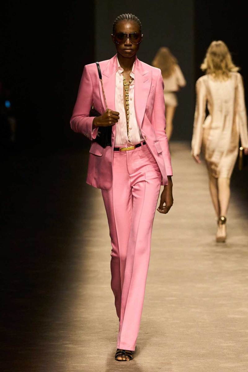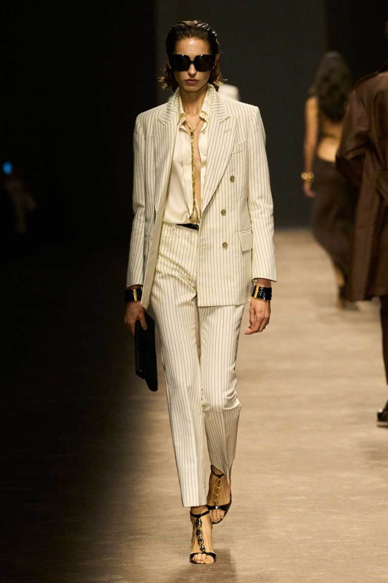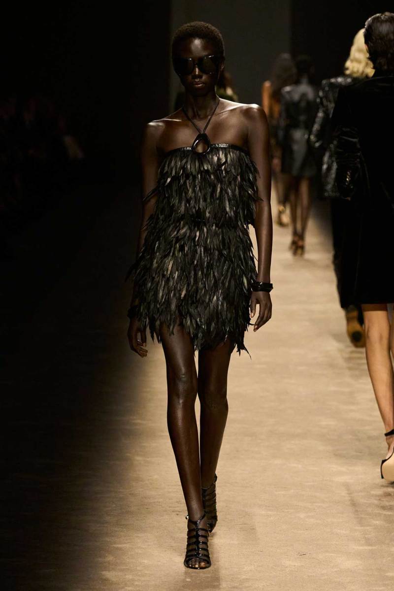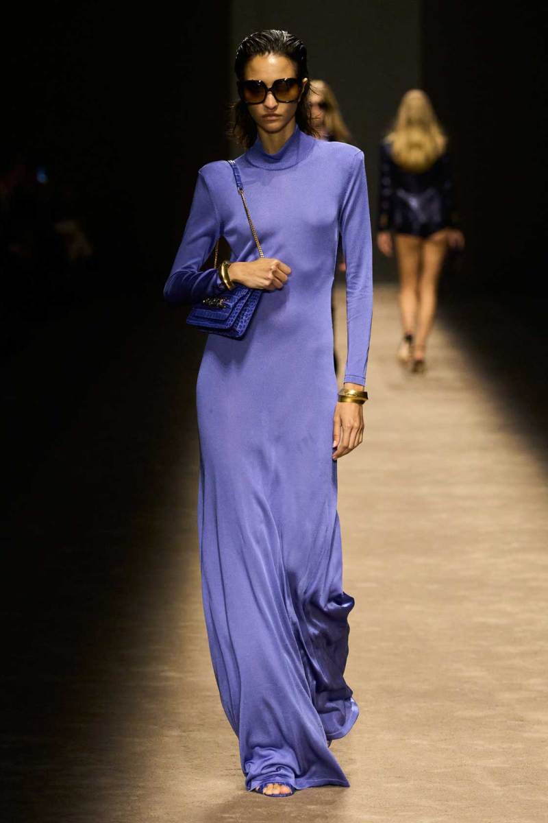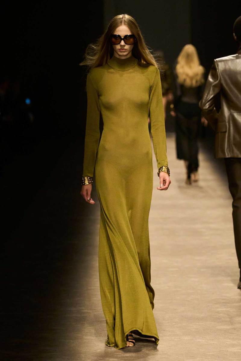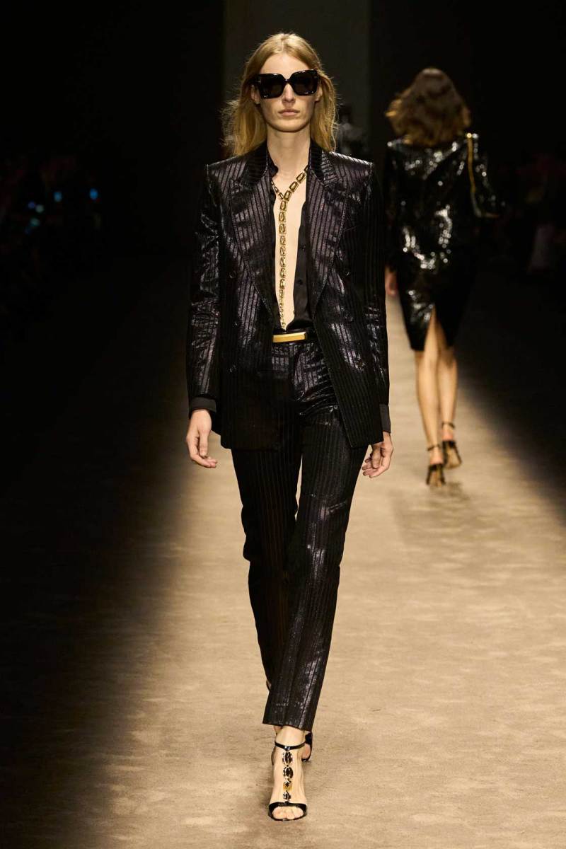 I modelli e le modelle sfilano disinvolti sulla passerella indossando pantaloni lunghi, micro shorts, mini abiti in pelle e altri lunghi e scivolosi. La contaminazione degli anni ’70 è evidente e dona alla passerella quello stile un po’ retrò che riesce però a stare al passo coi tempi moderni.