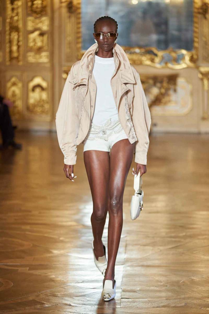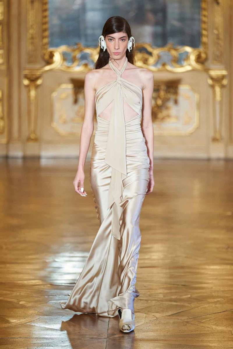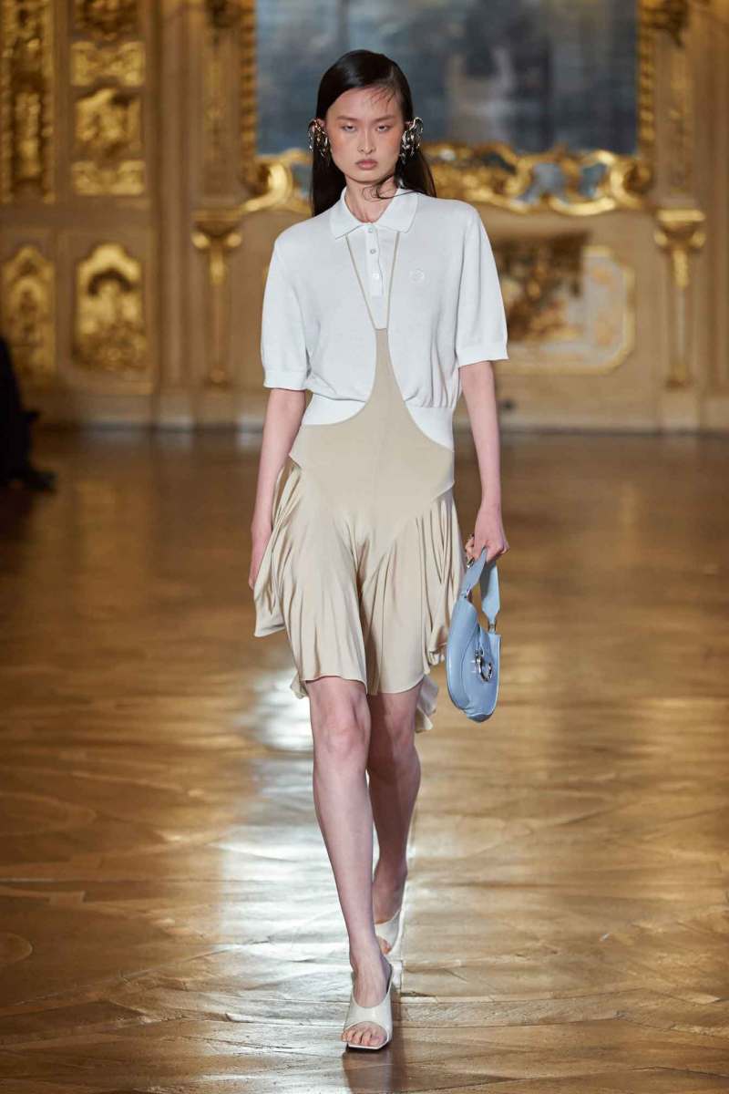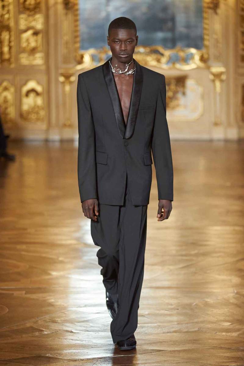 Trussardi è un po’ volatile, non ha una personalità stabile e stagna poiché è passato da vari nomi e ha intrapreso svariate strade di stile durante la sua crescita. Quest’anno il brand ha deciso di cambiare rotta, e ha preso delle decisioni innovative per seguire una nuova direzione senza continuità con le precedenti. La nuova collezione Primavera/Estate 2023 ha voluto trovare un punto di incontro tra il commerciale e la creatività. Abiti in jersey drappeggiato, trench e bermuda in finto coccodrillo, abiti da sera lunghi e pantaloni in raso da uomo sono stati considerati i capisaldi della sfilata.