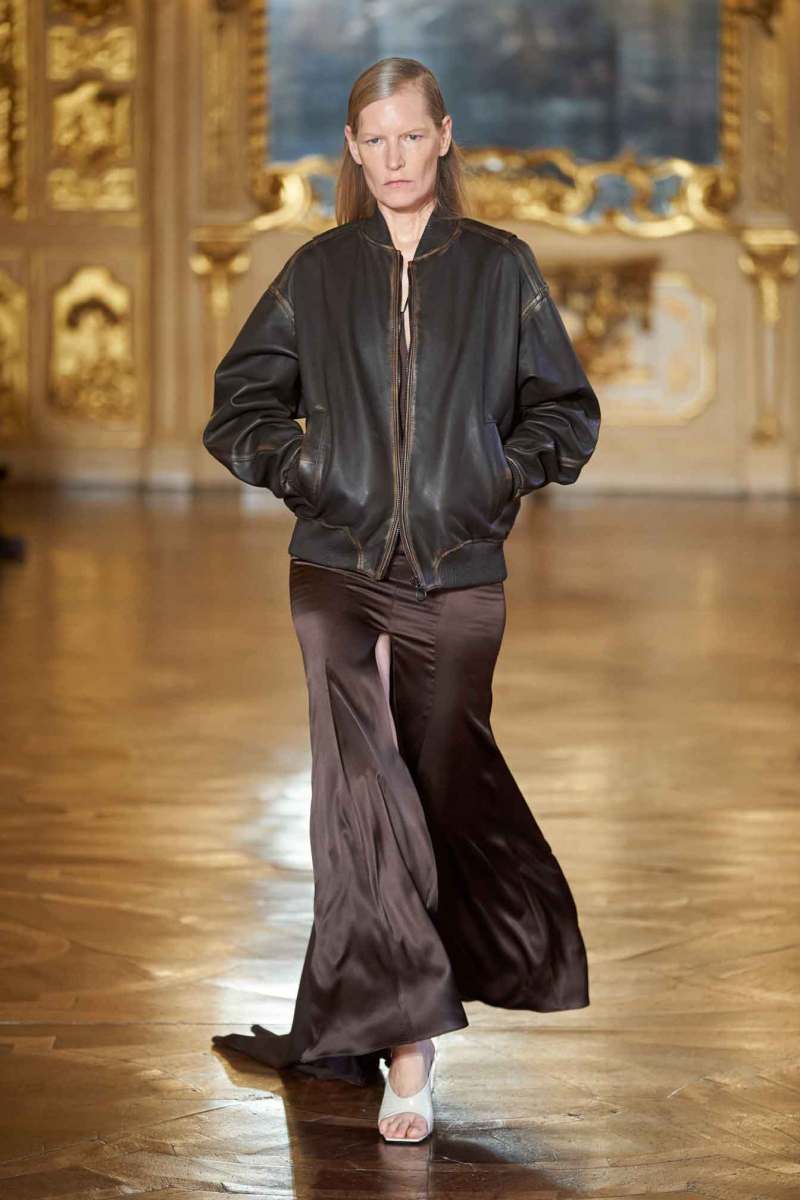 Un mix di stile comfy e abiti super chic ha fatto la sua entrata in scena in passerella: si sono mixati pantaloni cargo a vita bassa, capi in denim, giacche raglan anni ’80, micro top e abiti in lycra e chiffon davvero très chic. Il tutto abbinato ad accessori personalizzati dal logo Trussardi.