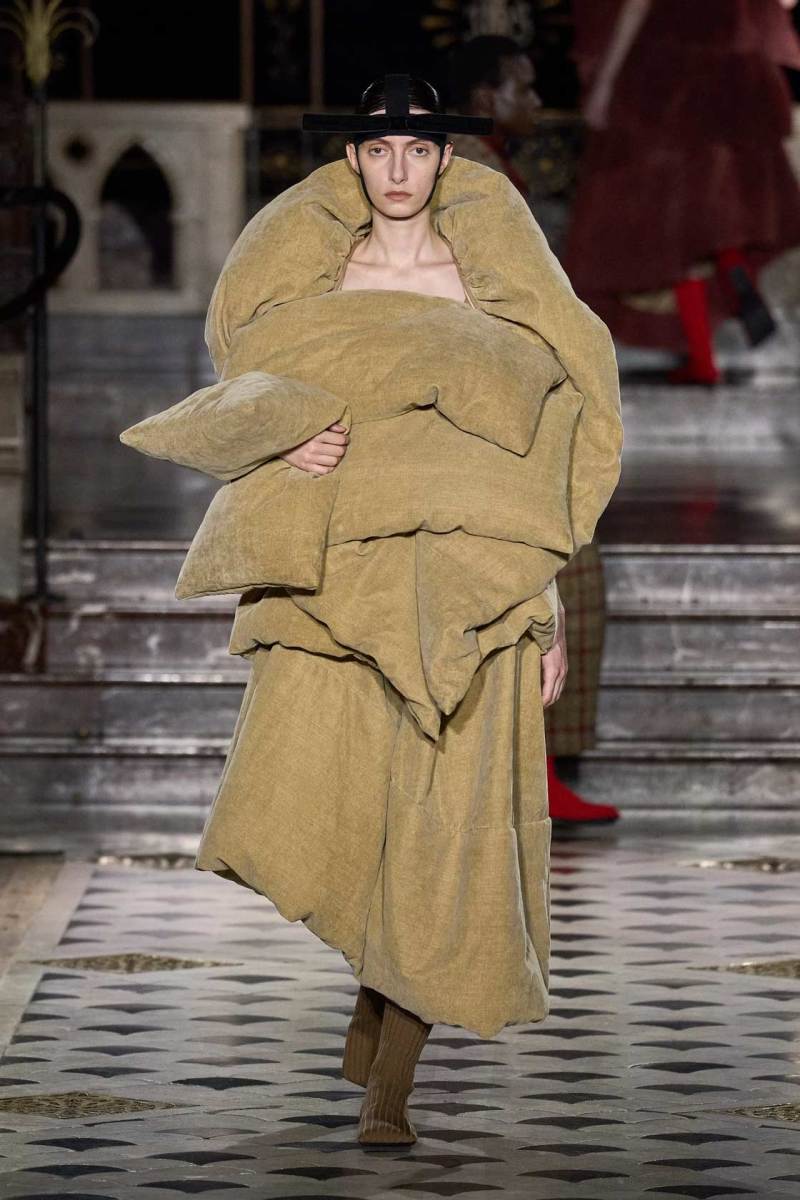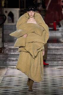 I ricordi del passato si fanno eco nel presente: vengono raccontati tramite una nuova narrativa che prova a conciliare al meglio il passato e il presente. In passerella le modelle sfilano indossando abiti super originali: a trapezio, spezzati asimmetrici, capi gonfi e dai volumi davvero ampi. Il tessuto è il vero protagonista, e il designer cinese decide di giocare con quest’ultimo trasformandolo, smontandolo e poi rimontandolo in una nuova ottica.