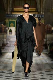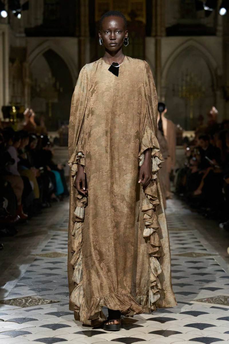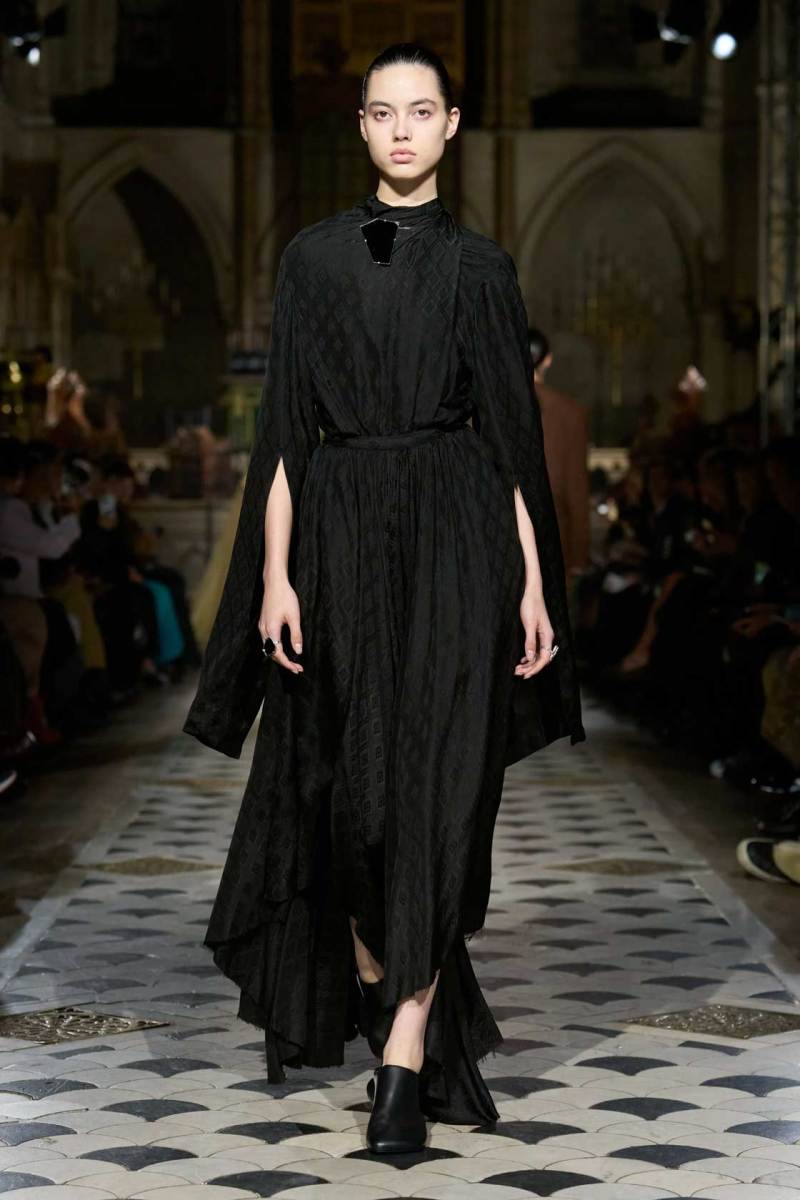 Il contesto in cui si svolge una sfilata è fondamentale per il messaggio che si vuole trasmettere. La chiesa sconsacrata, con la sua architettura imponente e il suo passato carico di significato, ha aggiunto un ulteriore livello di profondità alla collezione, trasformando la sfilata in una vera esperienza sensoriale. Durante la Paris Fashion Week, location come questa diventano veri e propri set cinematografici, dove ogni dettaglio contribuisce a costruire un kolossal di moda: anche questa volta, la cornice ha reso il tutto ancora più affascinante, dimostrando come lo spazio possa esaltare il concetto creativo del designer.