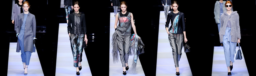 Re Giorgio non sbaglia un colpo. La fashion week milanese si conclude al meglio all’insegna dell’eleganza e della raffinatezza firmata Armani. Abiti scivolati impreziositi da paiettes e cristalli ricamati si sono alternati agli ever green della maison dal mood decisamente più maschile, per il giorno ovviamente, completi sartoriali, in grado di accompagnare morbidamente il corpo, sono illuminati da colori vivaci sfumati tra il verde acqua e il blu elettrico. Non sono mancate le mezze misure con vestiti ladylike dal sapore adolescenziale in versione baby-pink. La novità indiscussa della collezione A/I è stata la gonna/pantalone. Di cosa si tratta? Una gonna a portafoglio annodata al classico pantalone di alta fattura della ditta made in Italy. Che dire a 80 anni Re Giorgio non è proprio pronto ad abdicare!